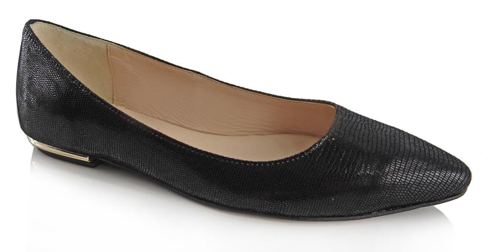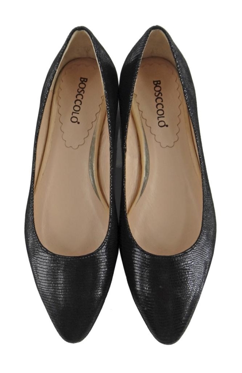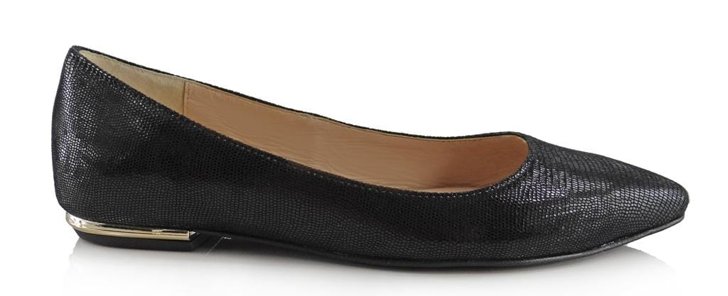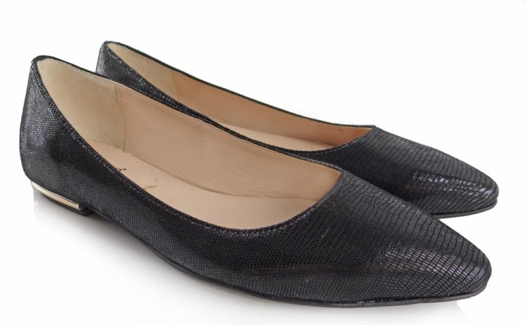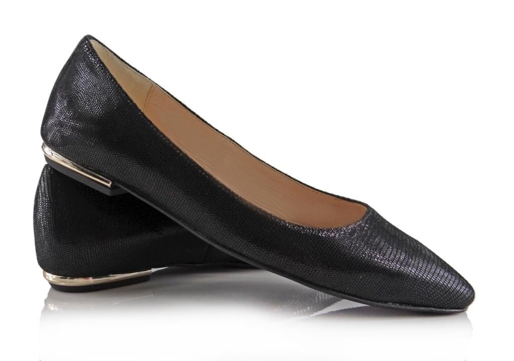 Skórzane baleriny ze skóry naturalnej o fakturze żmijki.