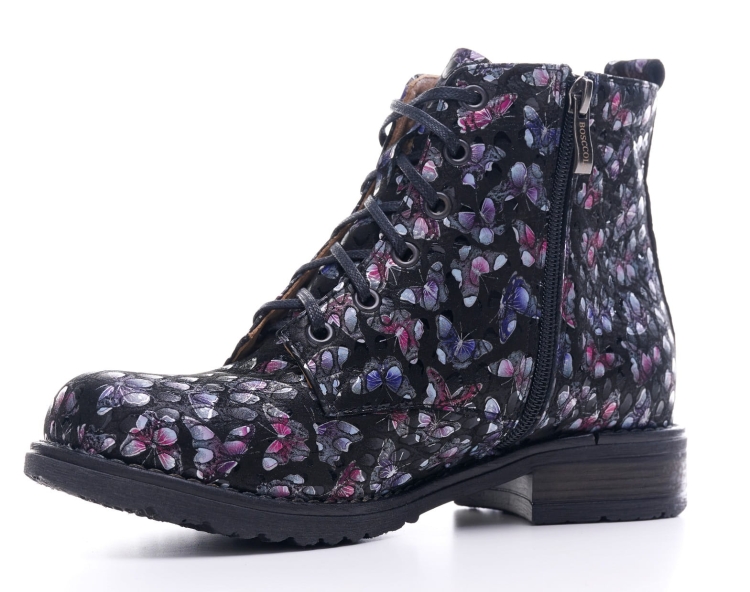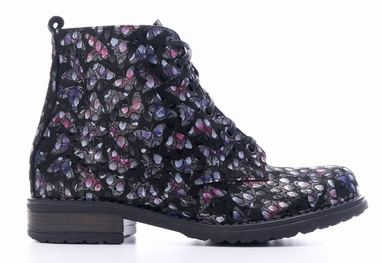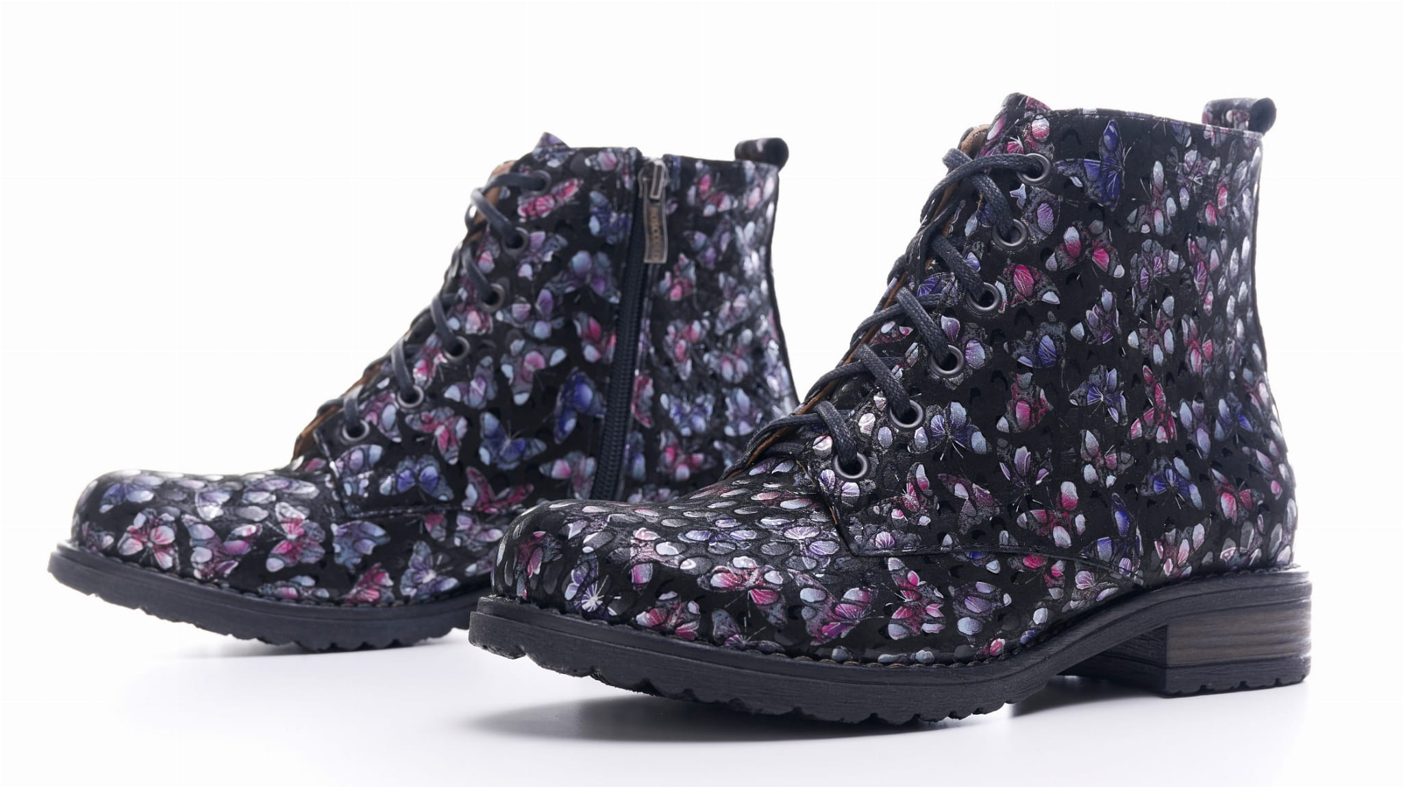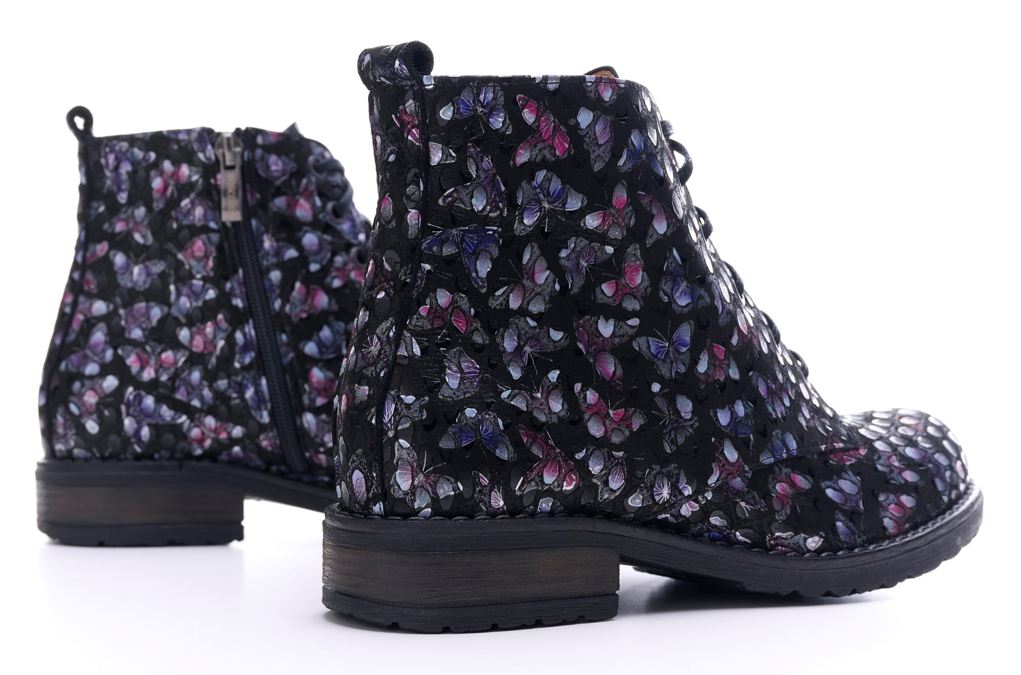 Eleganckie botki skórzane z naturalnej skóry z kolorowym printem- motylki.
