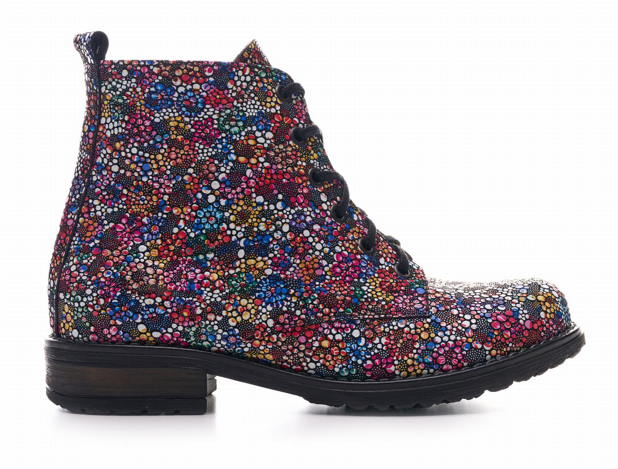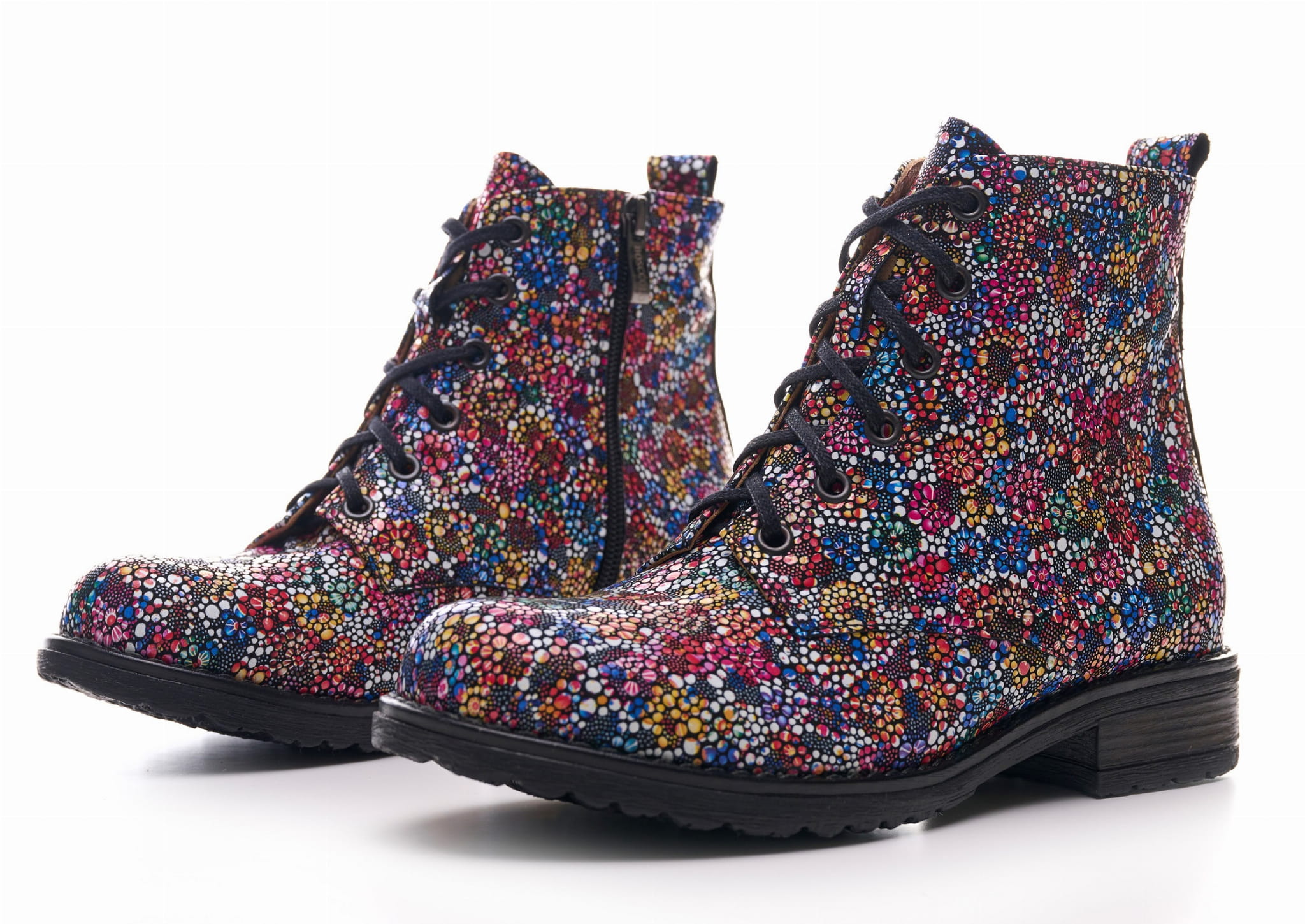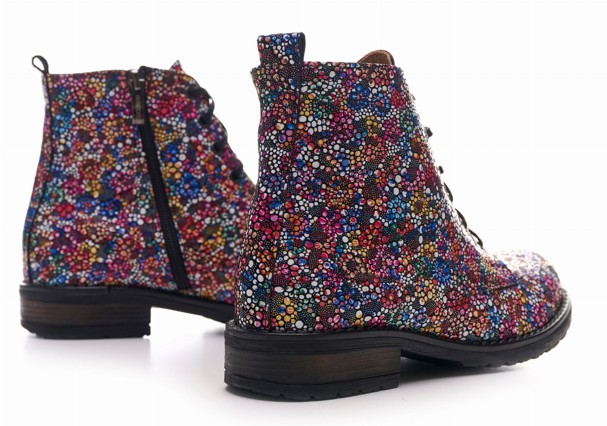 Eleganckie botki skórzane z naturalnej skóry z kolorowym printem- kwiatki.