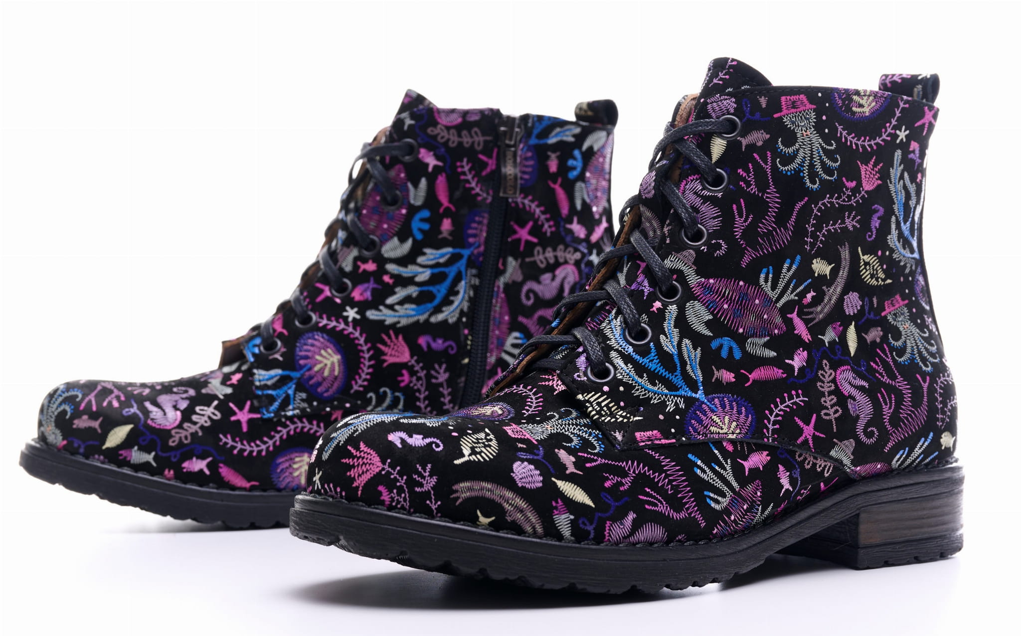 Eleganckie botki skórzane z naturalnej skóry , wzór rafa koralowa.