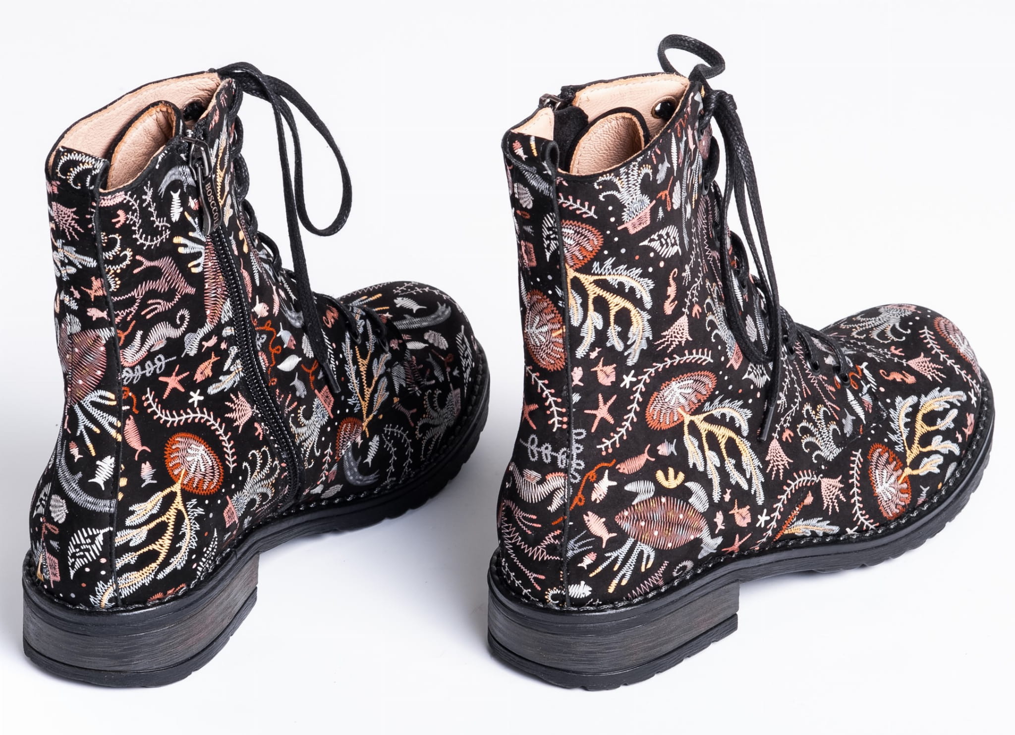 Eleganckie botki skórzane z naturalnej skóry o wzorze rafy koralowej .
