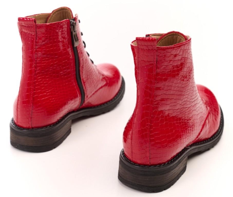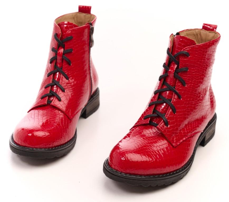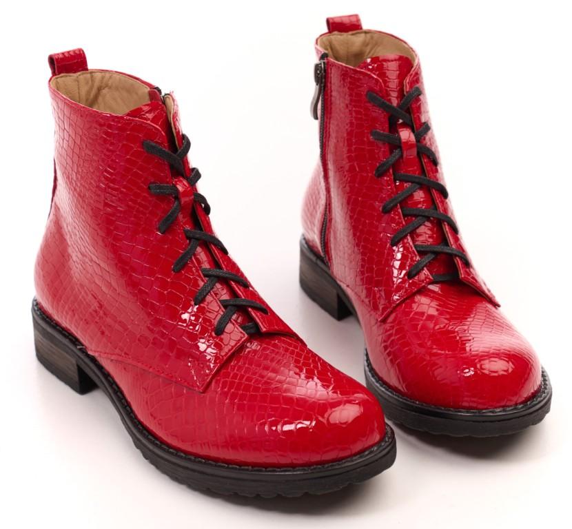 Eleganckie botki skórzane z naturalnej skóry lakierowanej o fakturze skóry krokodyla.