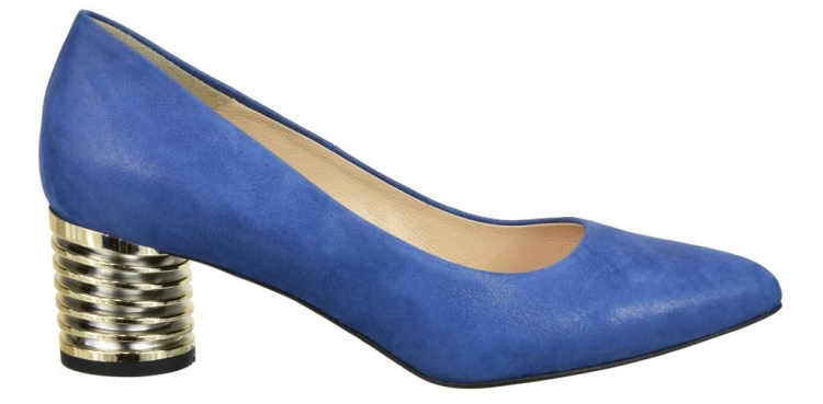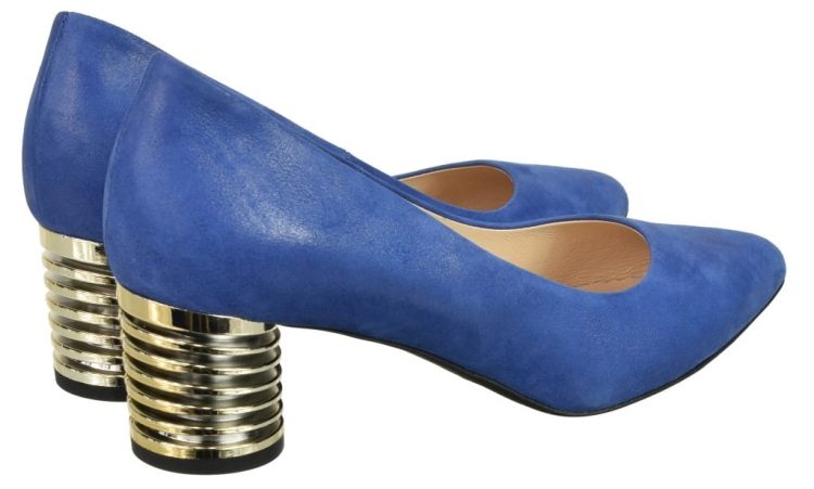 Eleganckie czółenka ze skóry naturalnej na obcasie, obcas ozdobny, metalizowany.