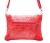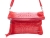Saszetka zamykana jest zatrzaskiem i suwakiem z pomponem, kieszeń z tyłu zapinana na suwak.