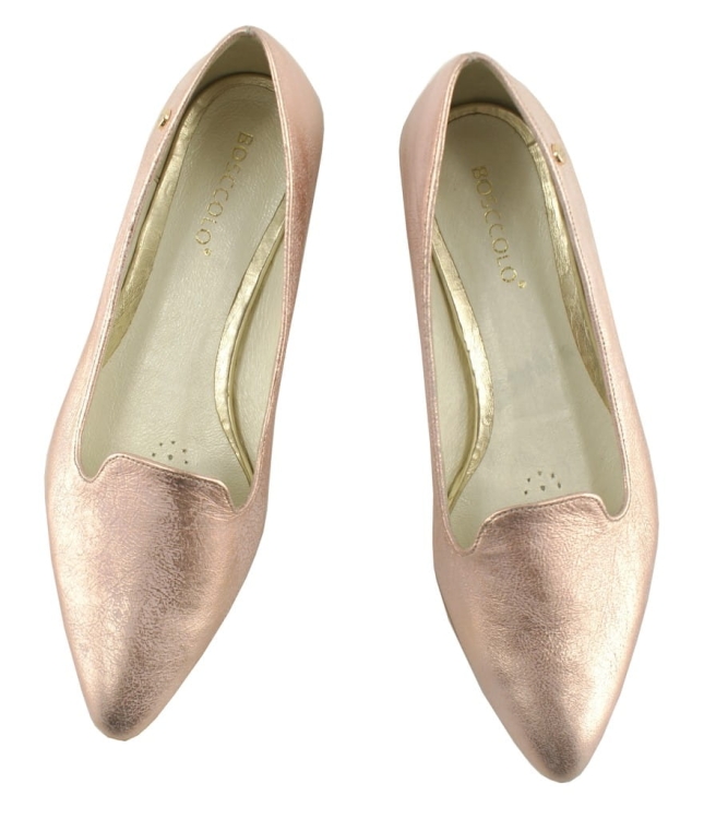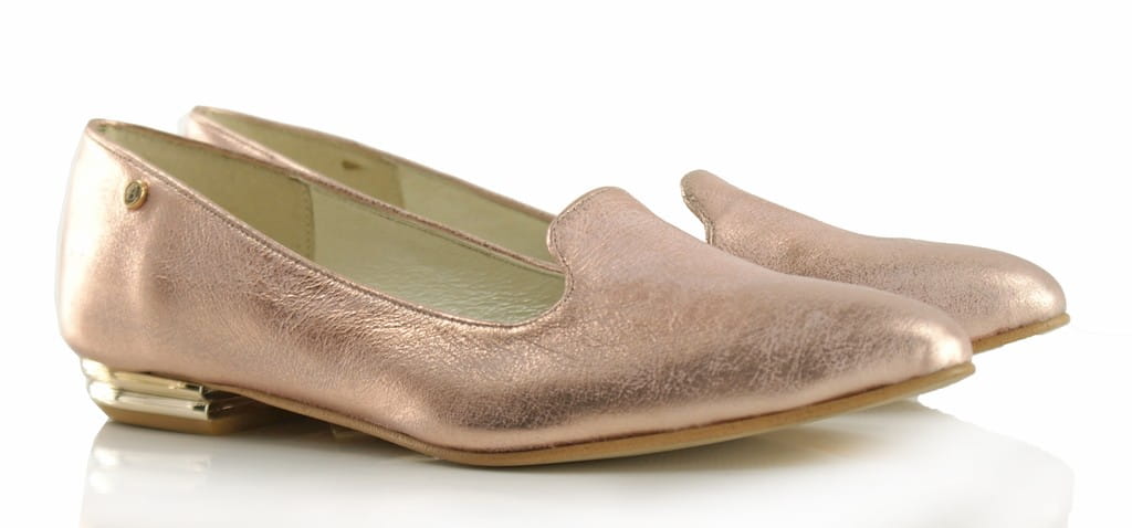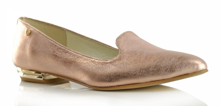 Eleganckie buty damskie z rodzaju lordsów, wykonane ze skóry naturalnej, metalizowanej, bardzo miękkiej w dotyku.
