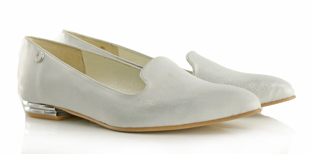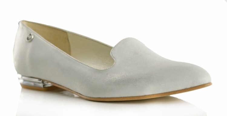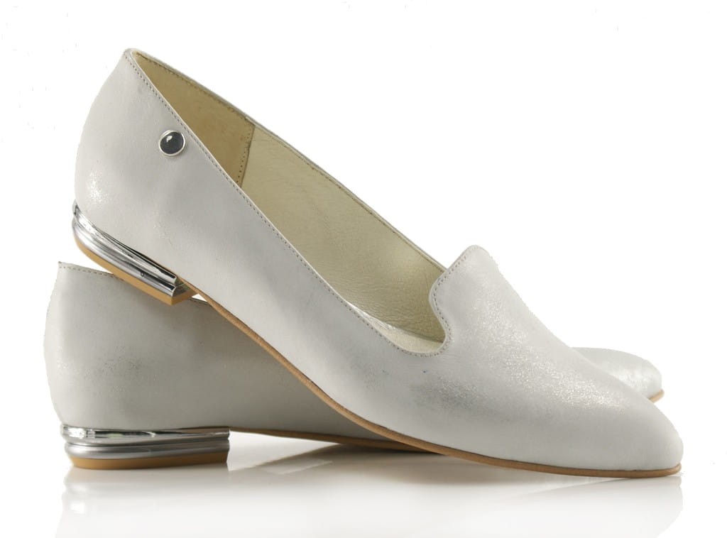Eleganckie buty damskie z rodzaju lordsów, wykonane ze skóry naturalnej, metalizowanej, bardzo miękkiej w dotyku.