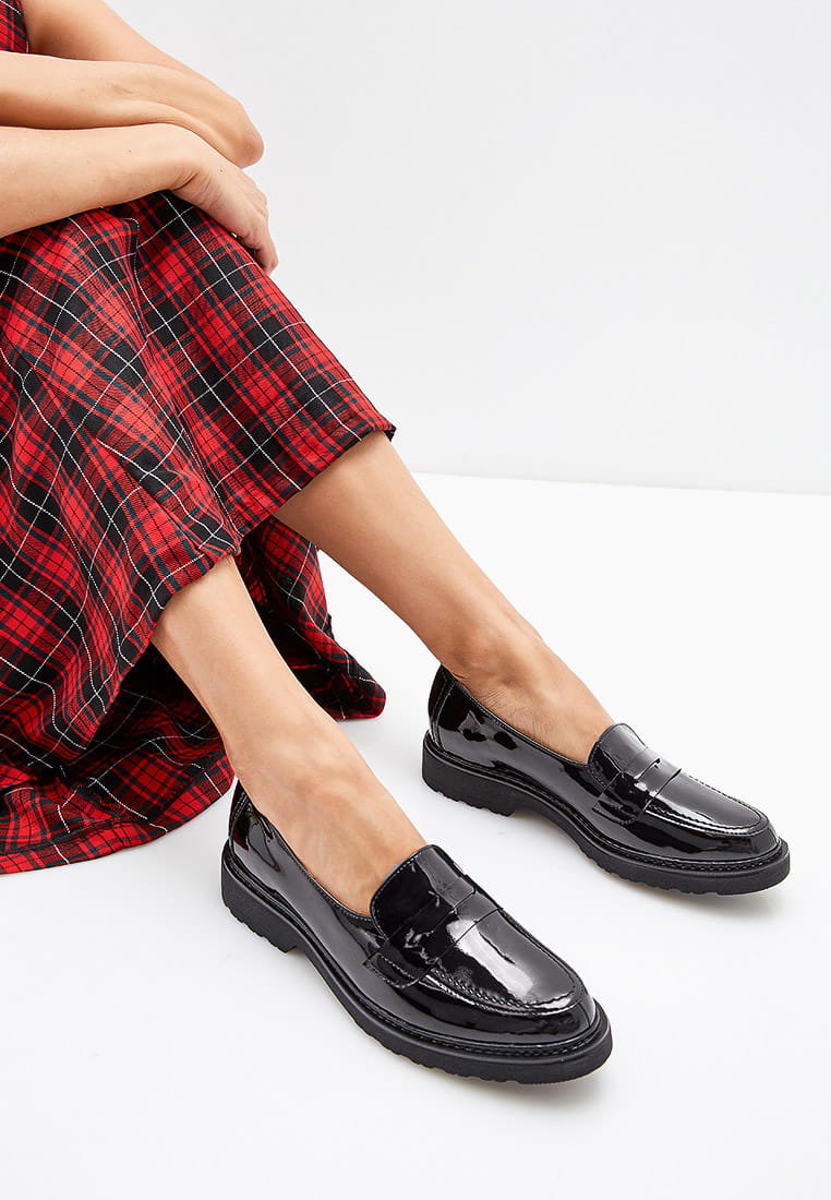 Eleganckie mokasyny damskie z naturalnej skóry lakierowanej.
