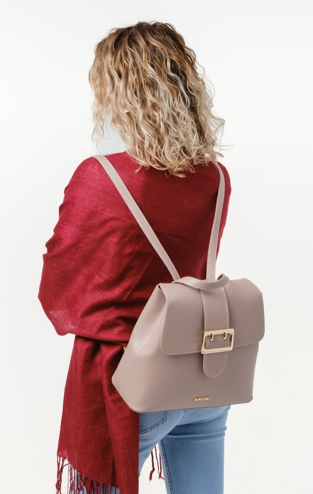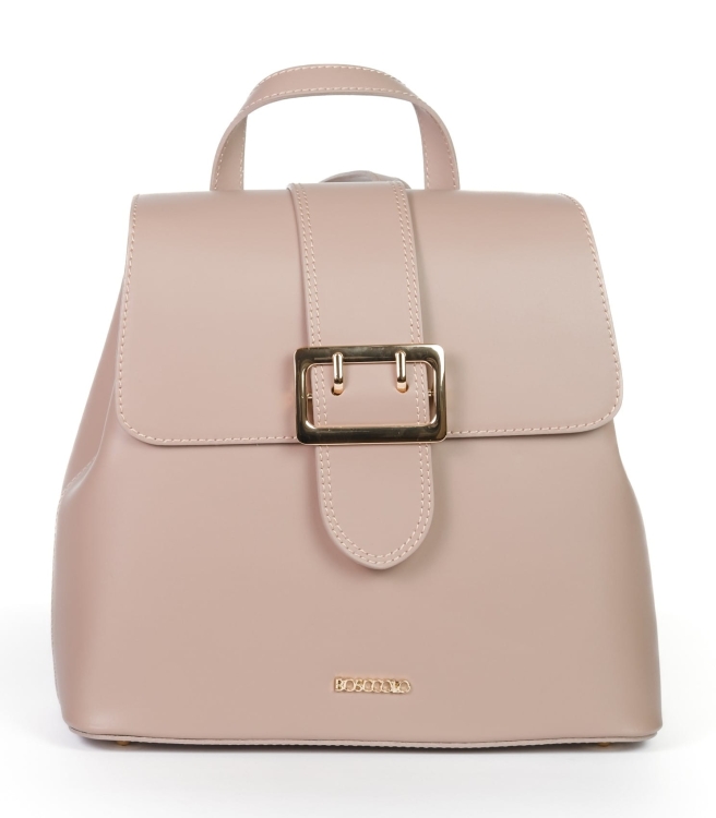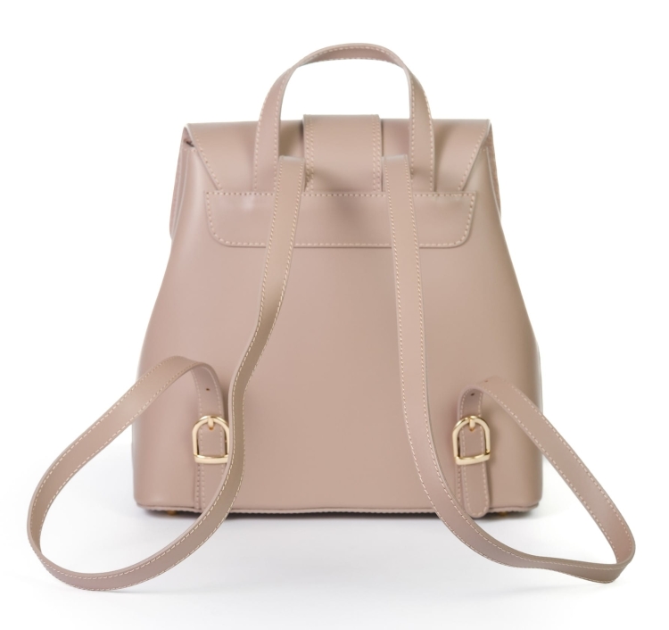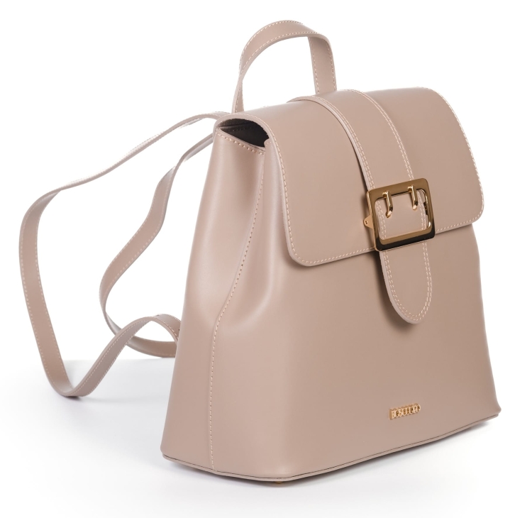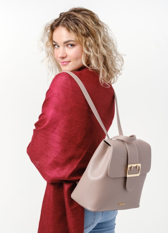 Plecak ze skóry naturalnej, gładkiej, z ozdobną klamrą, idealna dla aktywnych kobiet.