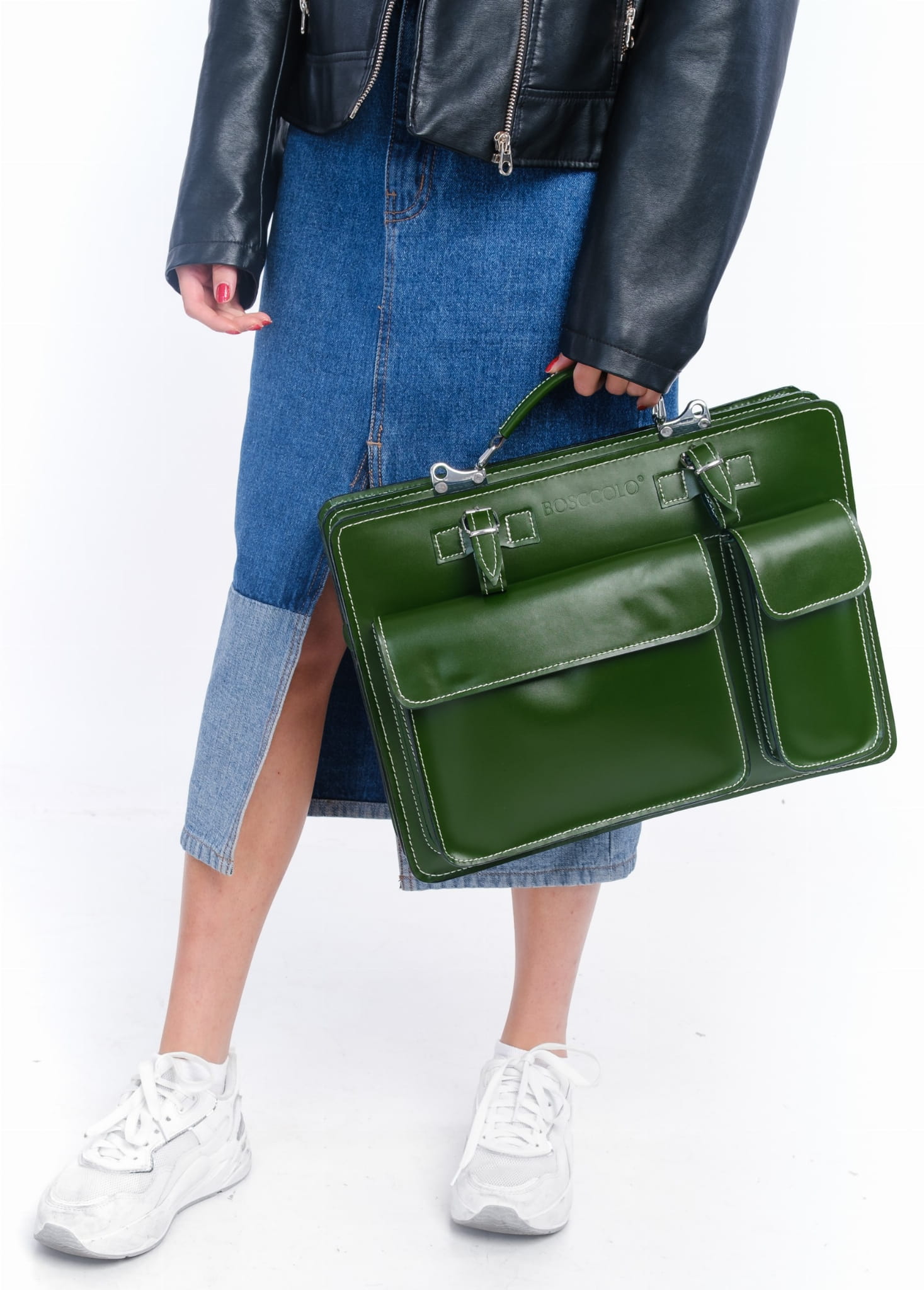 Aktówka jest bardzo lekka, usztywniana. Orygninalne przeszycia.