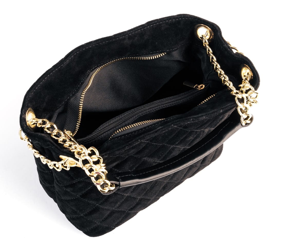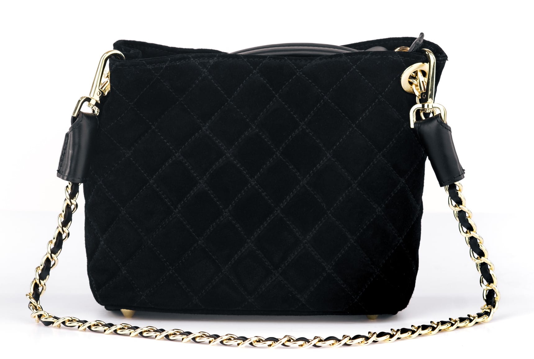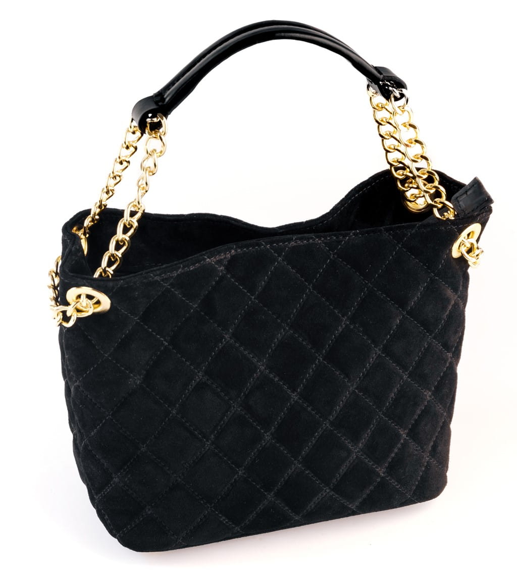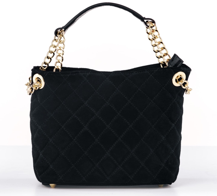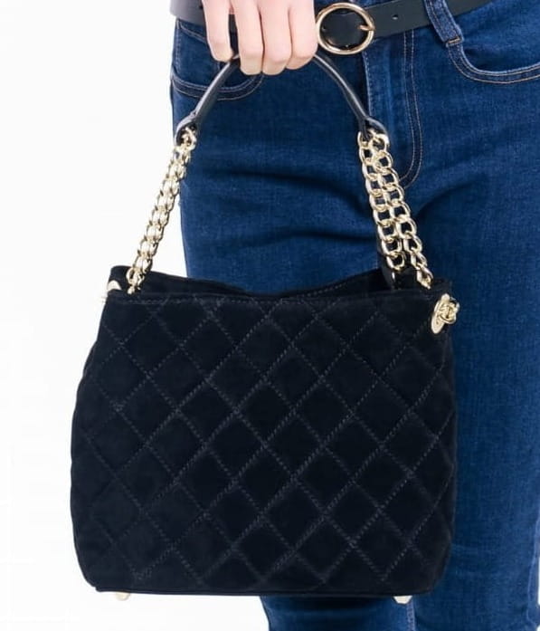 Elegancka torba ze skóry naturalnej, pikowany zamsz.