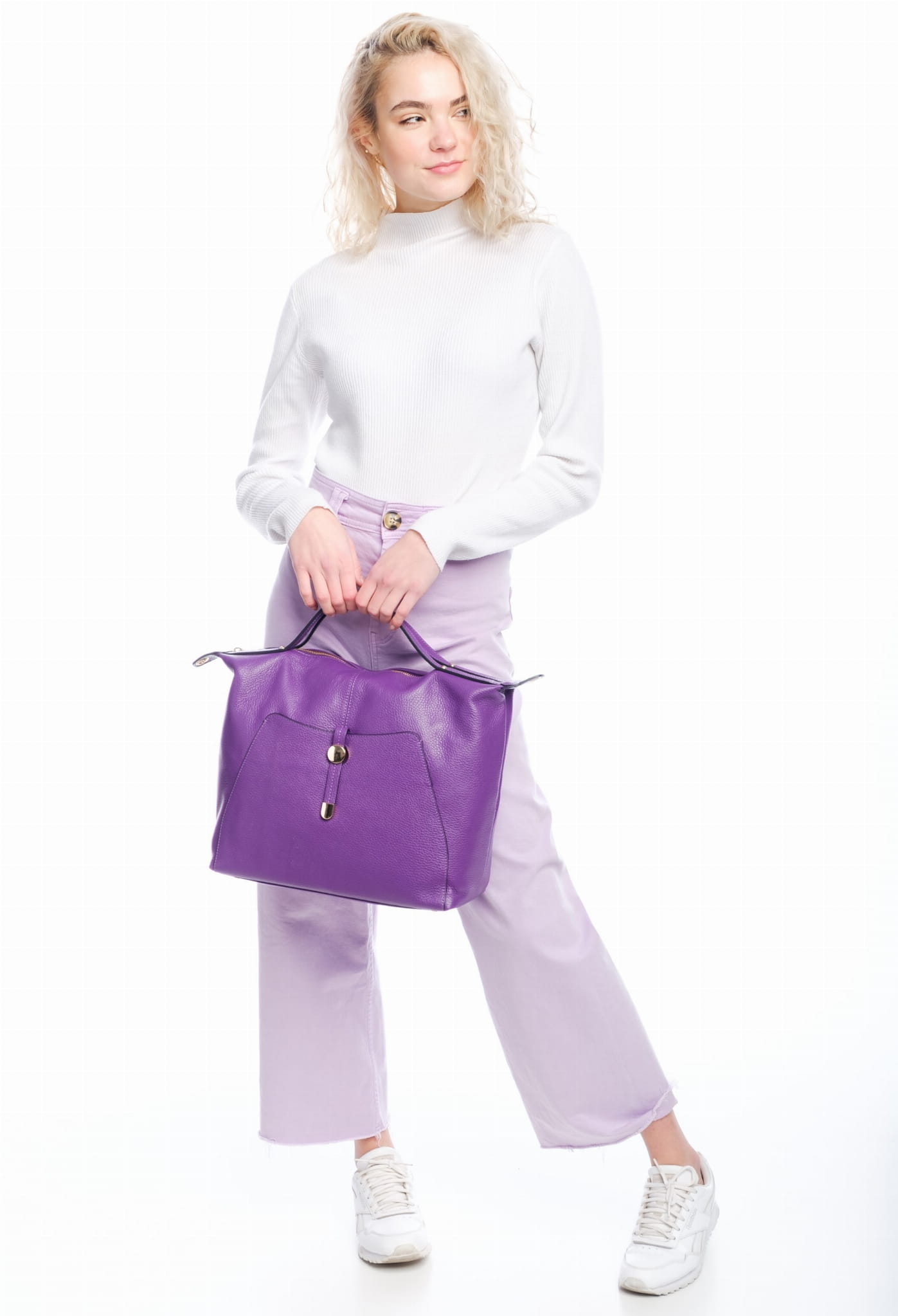 Elegancka torba ze skóry naturalnej. Ozdobne okucia.