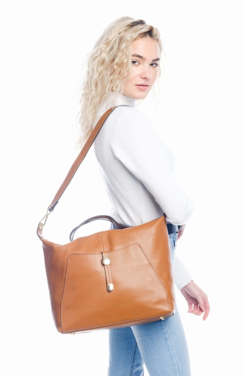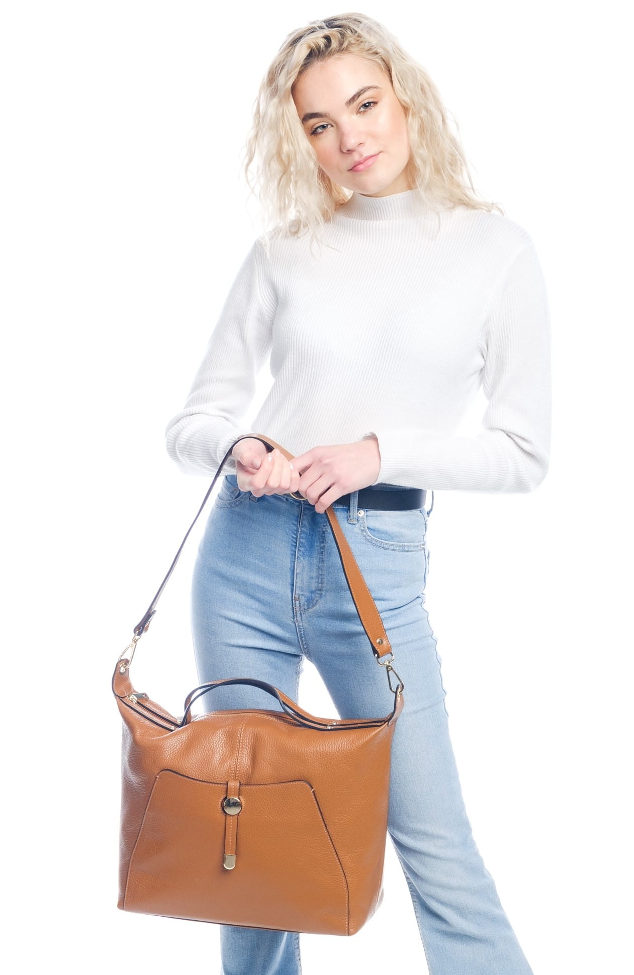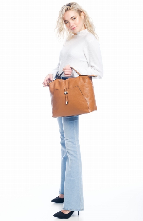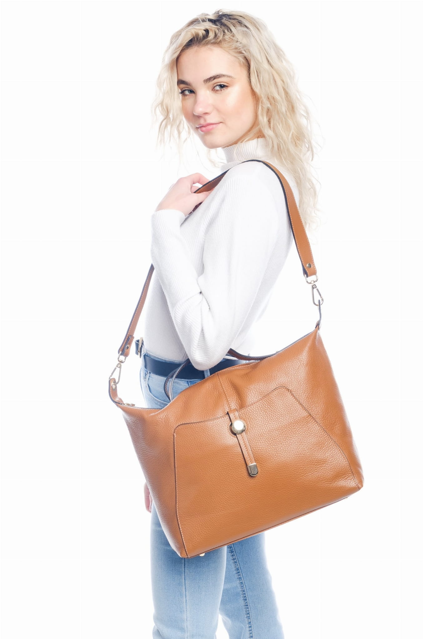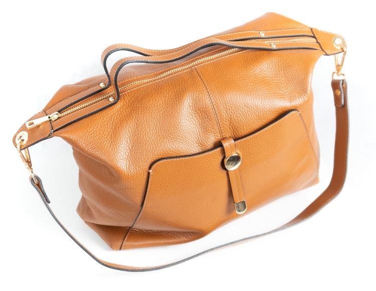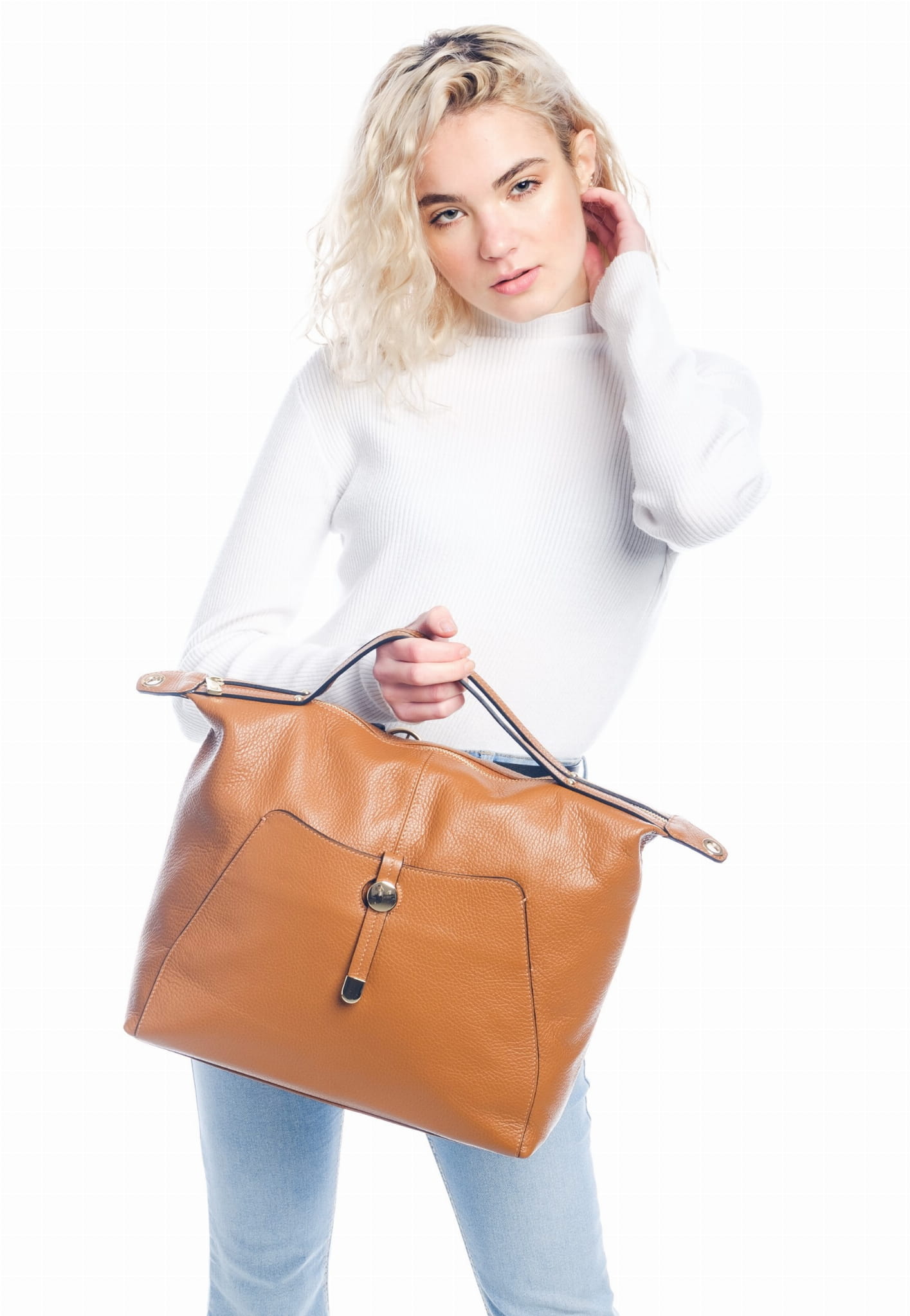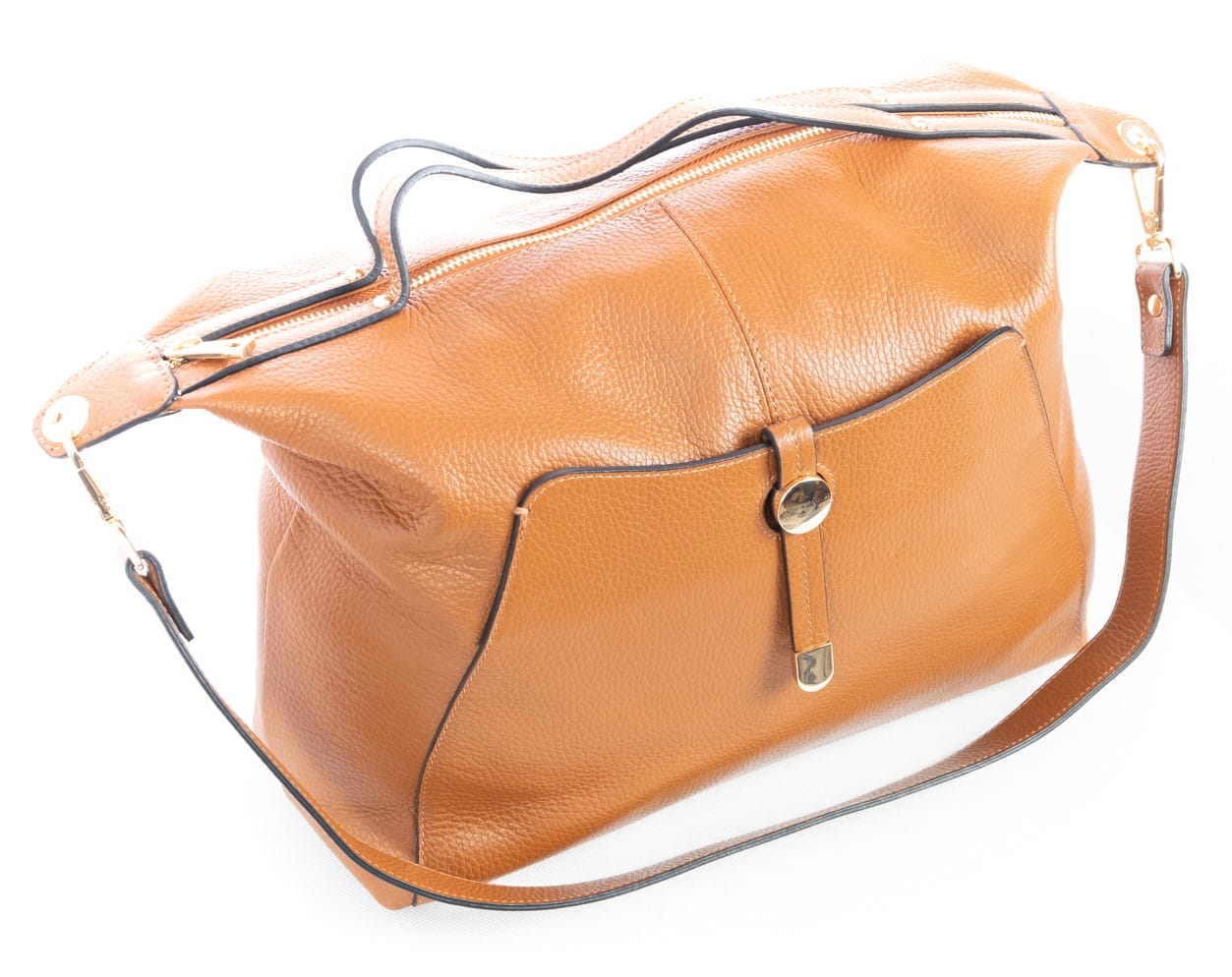 Elegancka torba ze skóry naturalnej. Ozdobne okucia.