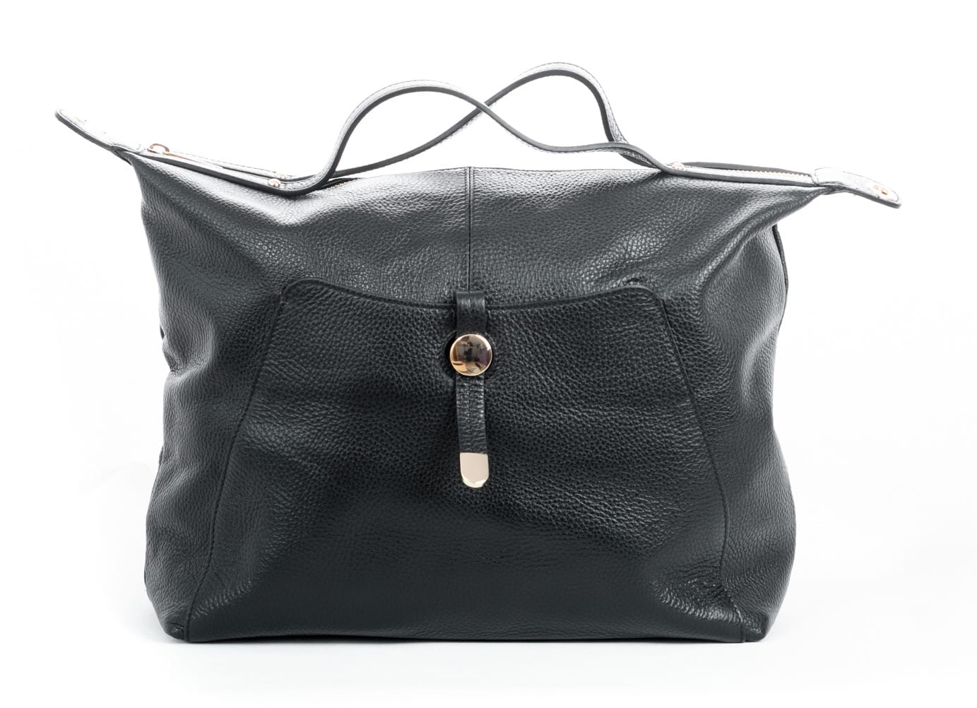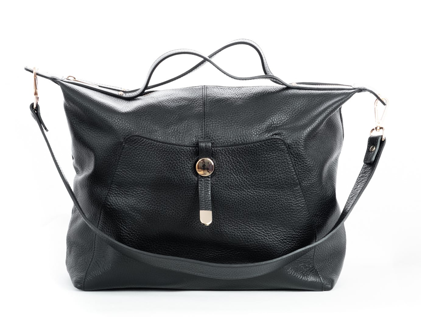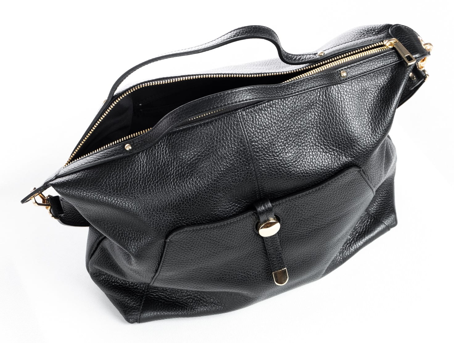 Elegancka torba ze skóry naturalnej. Ozdobne okucia.
