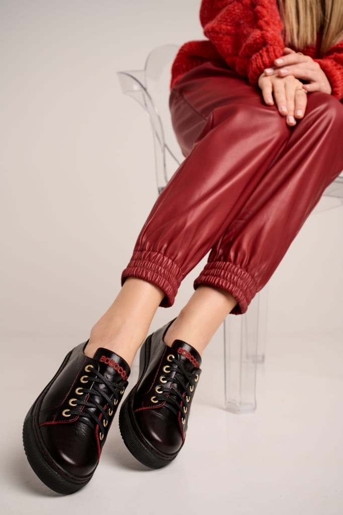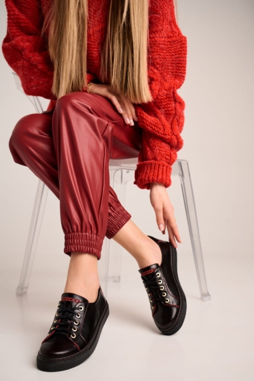 Skórzane trampki z naturalnej skóry licowej, sznurowane