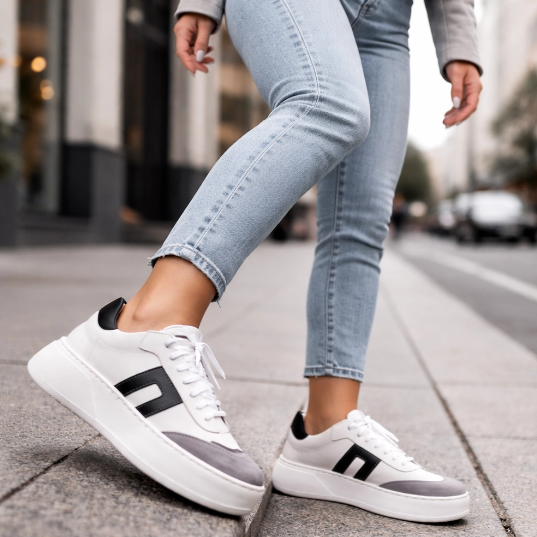 Sneakersy ze skóry naturalnej licowej połączonej z elementami skóry zamszowej