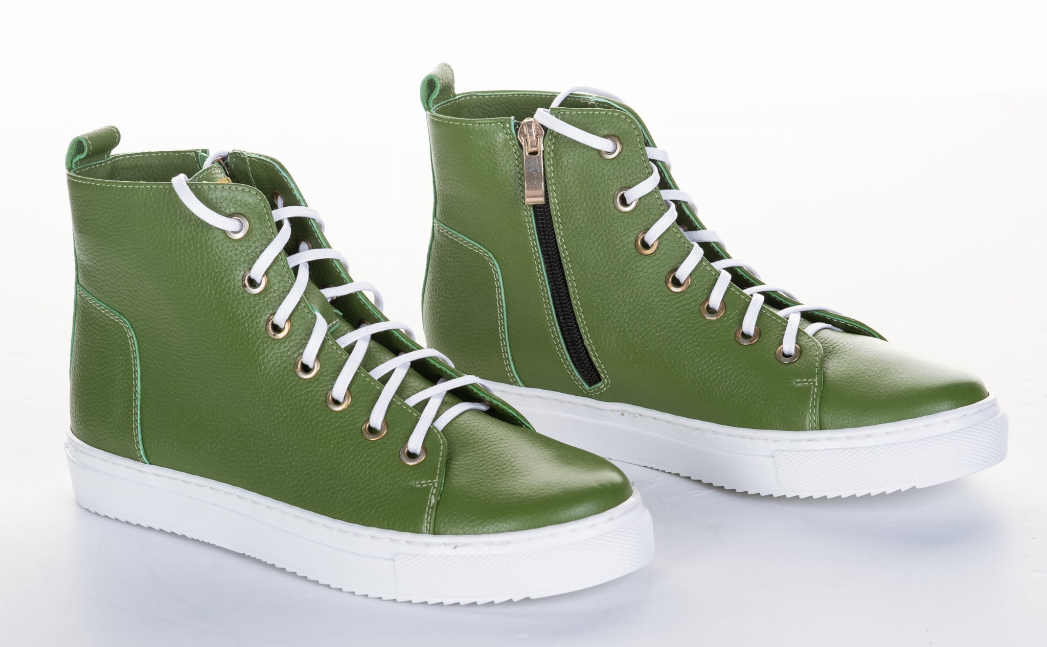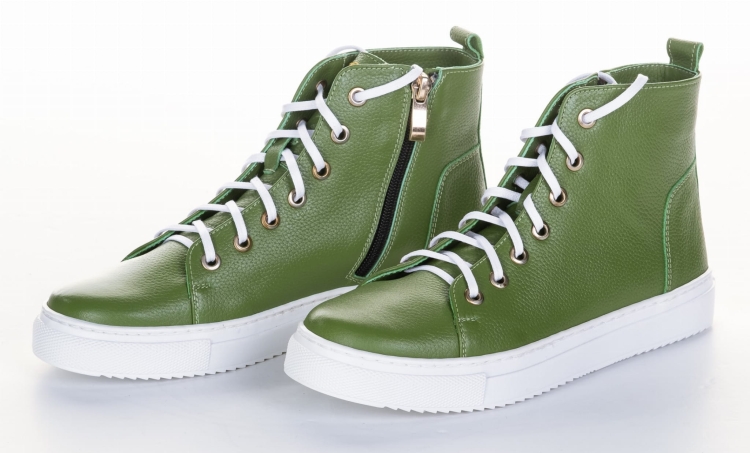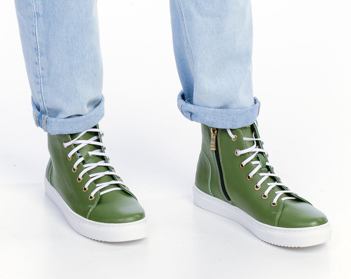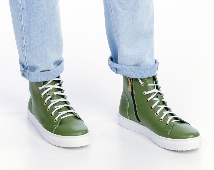 Skórzane trampki za kostkę z naturalnej skóry licowej z nadrukiem w kwiaty, suwak + sznurówki