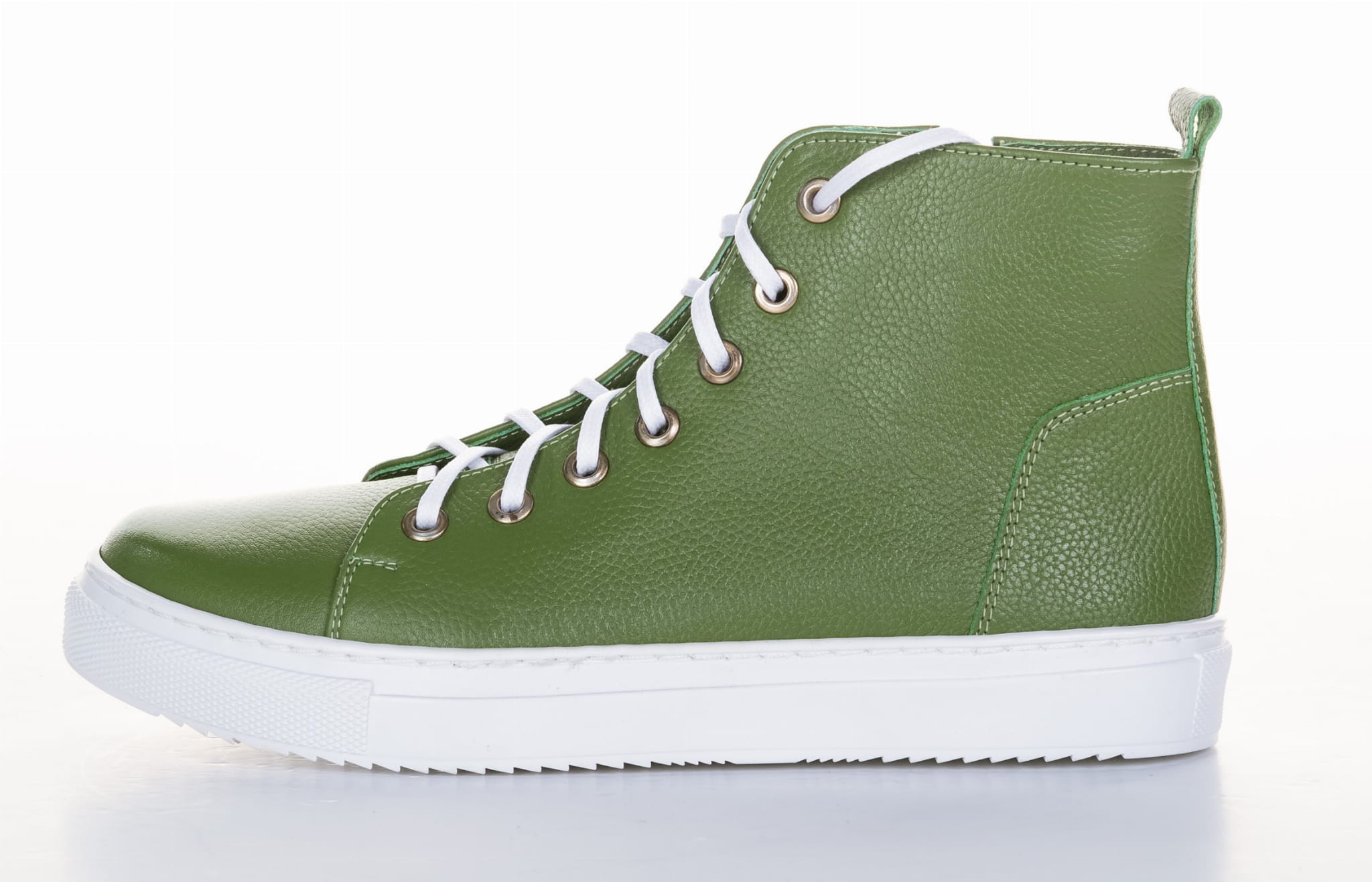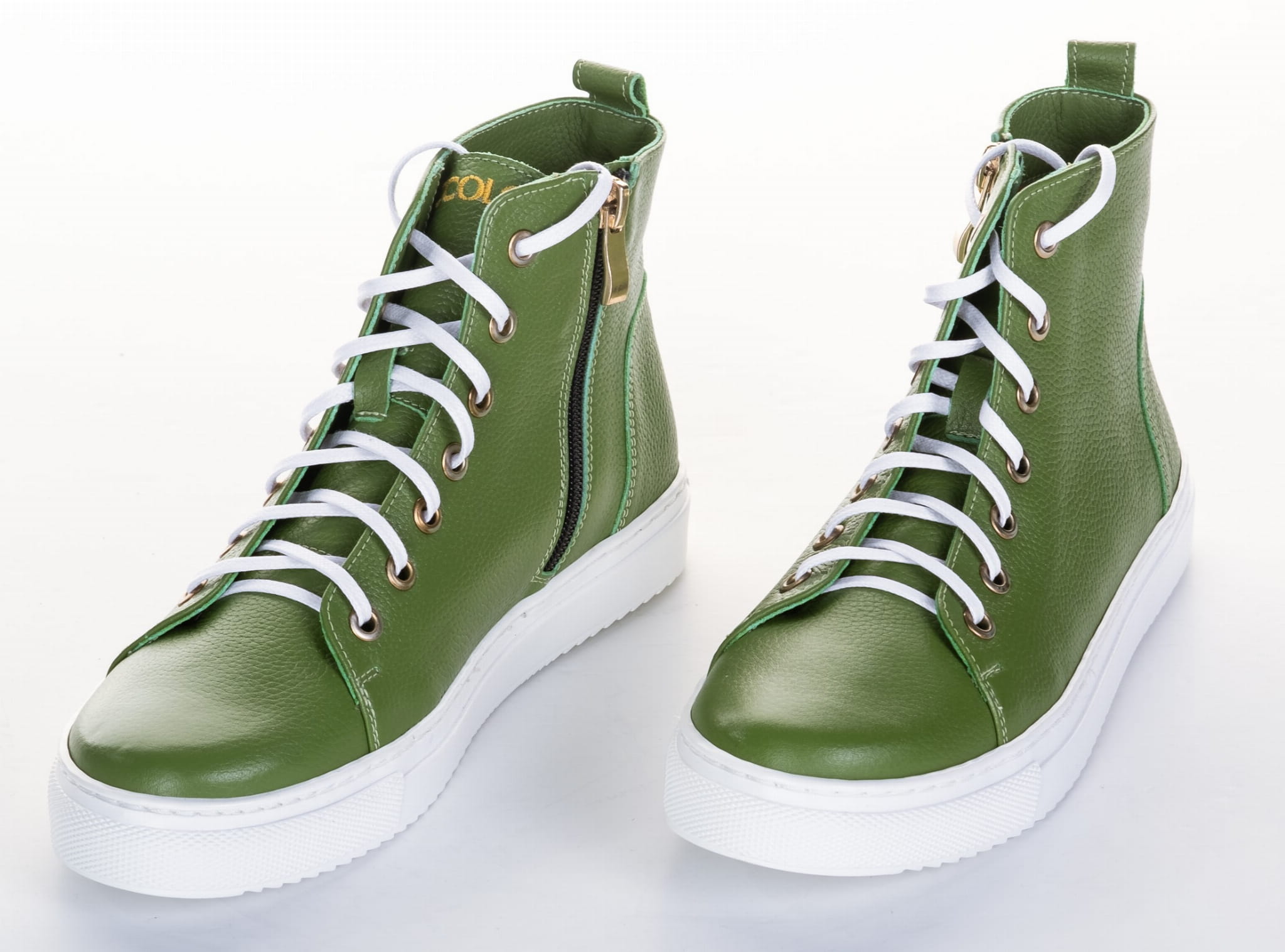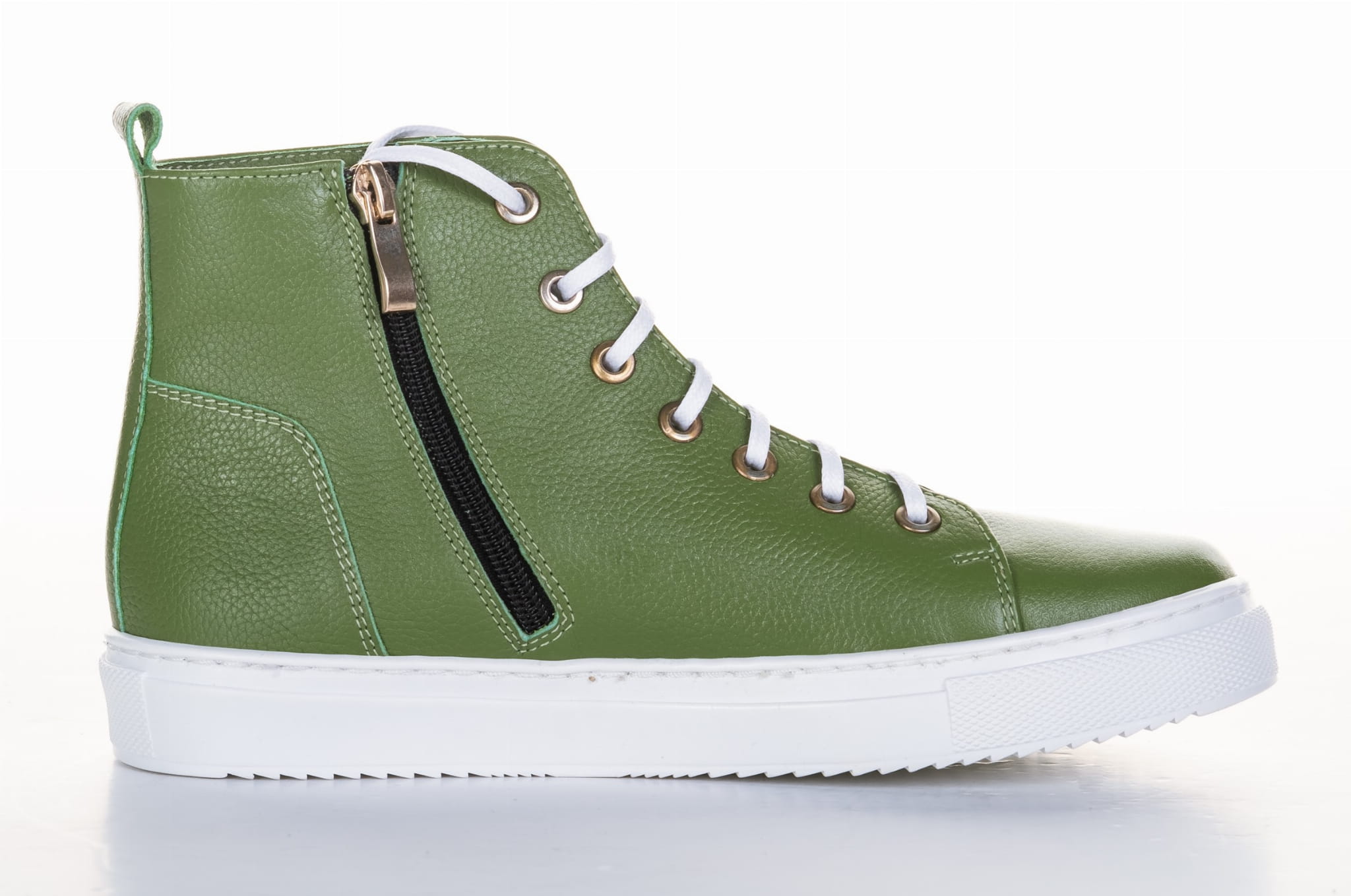 Skórzane trampki za kostkę z naturalnej skóry licowej z nadrukiem w kwiaty, suwak + sznurówki