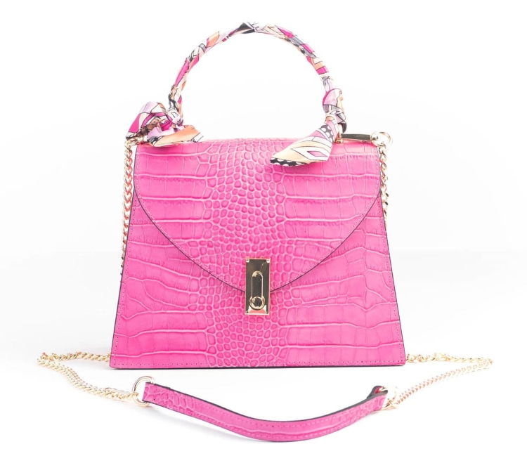 Elegancka torba ze skóry naturalnej o fakturze krokodyla, idealna do codziennych stylizacji.