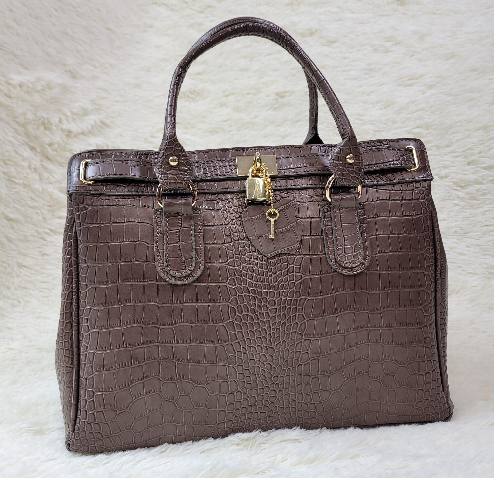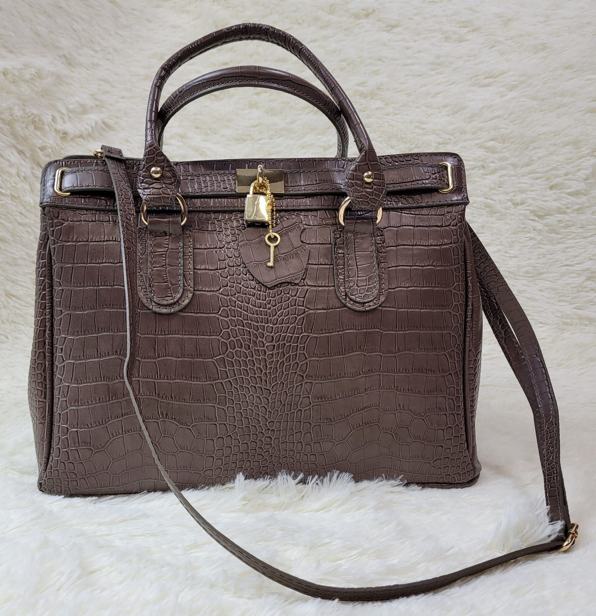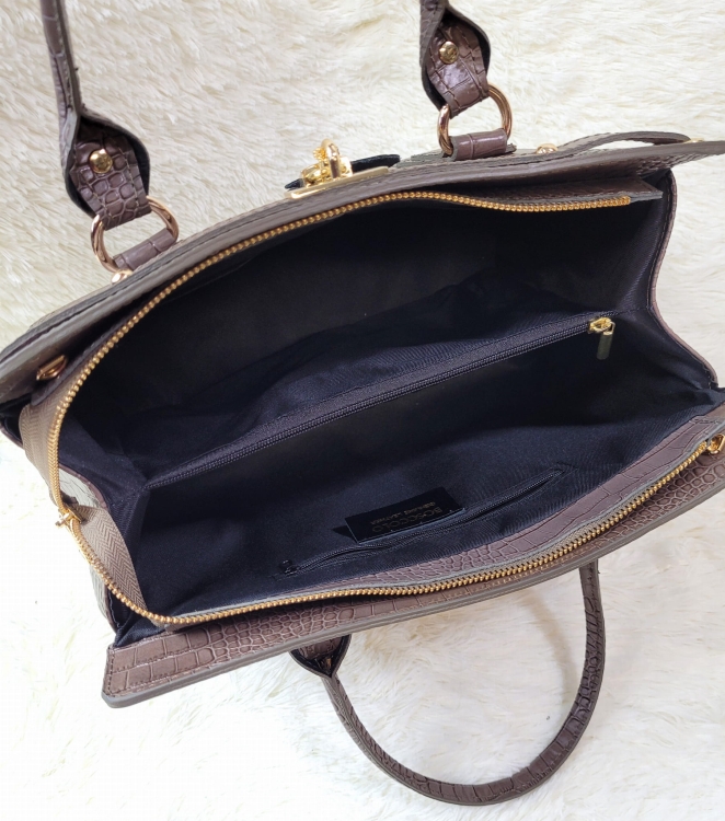 Torba do ręki lub na ramię, w komplecie dopinany długi pasek, ozdobne okucia - pasek z kłódką.