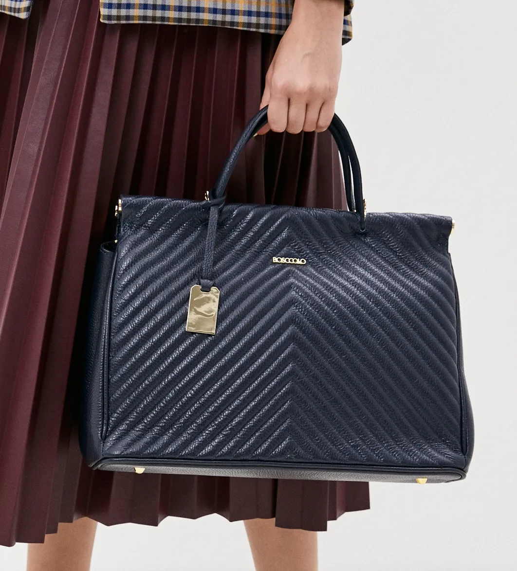 Elegancka torba ze skóry naturalnej, idealna do biura, mieści format A4.