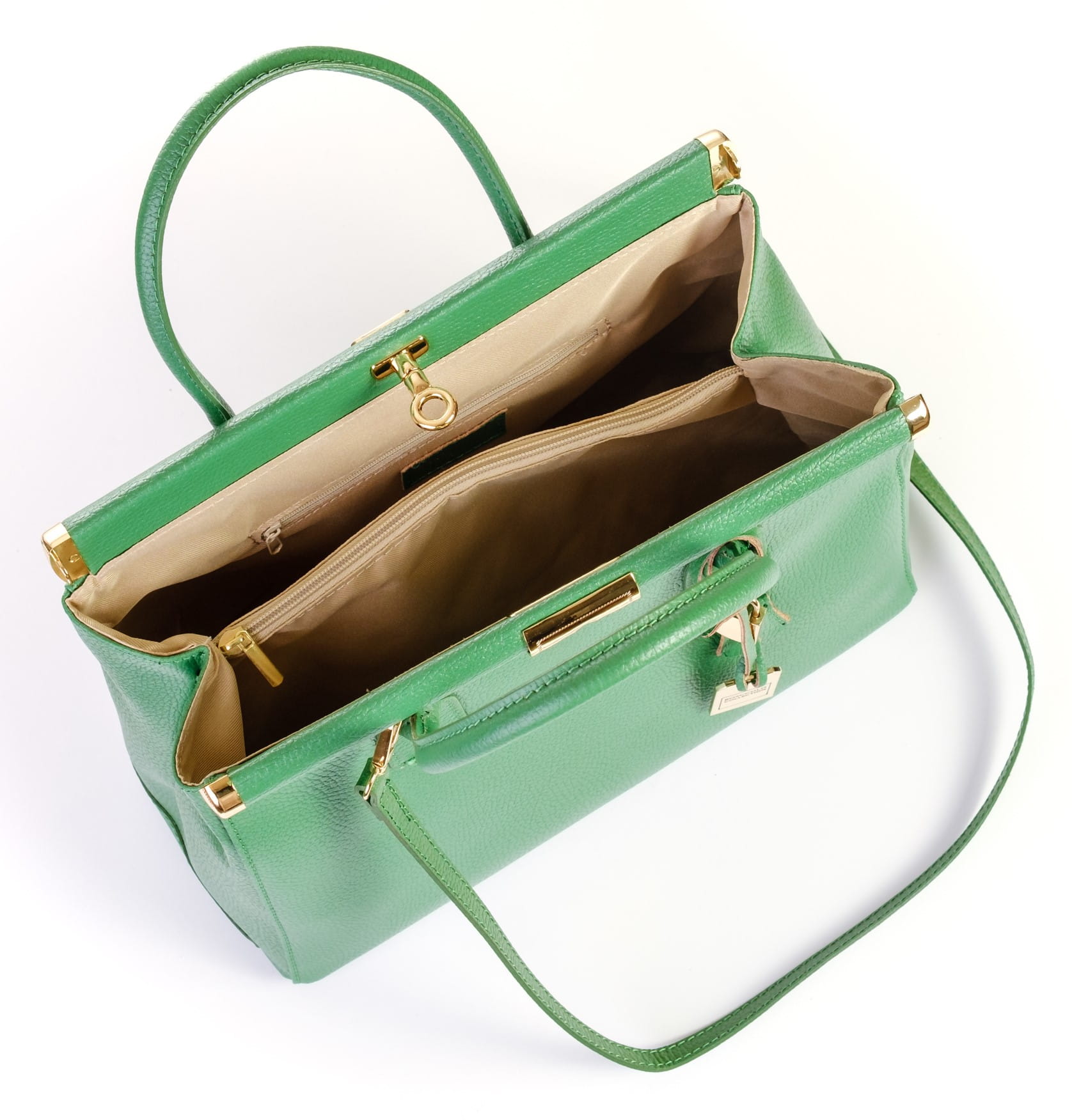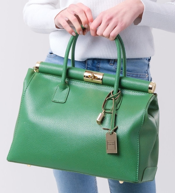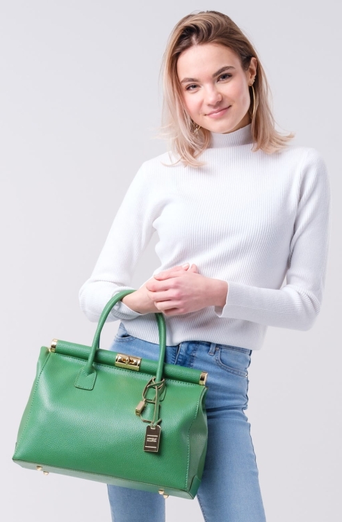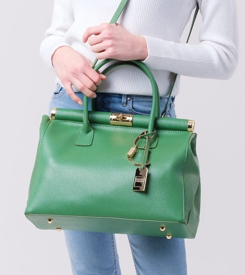 Elegancka torba ze skóry naturalnej. Ozdobne okucia.