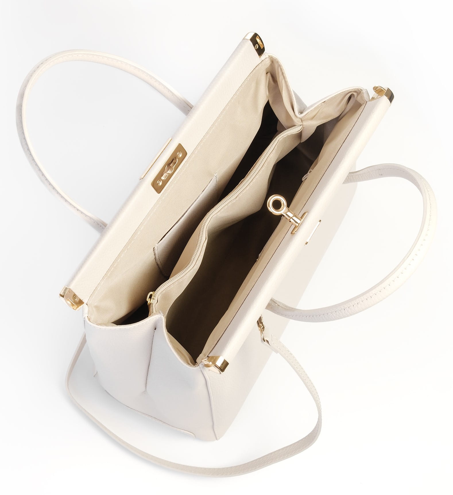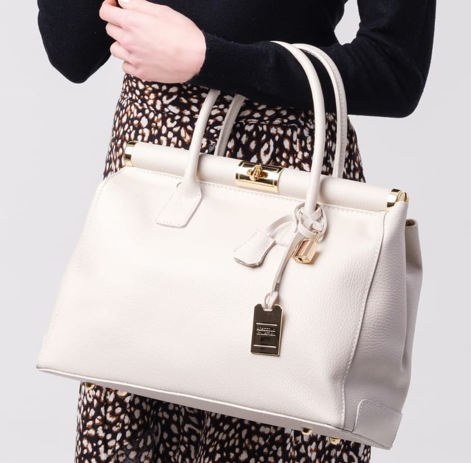 Elegancka torba ze skóry naturalnej. Ozdobne okucia.