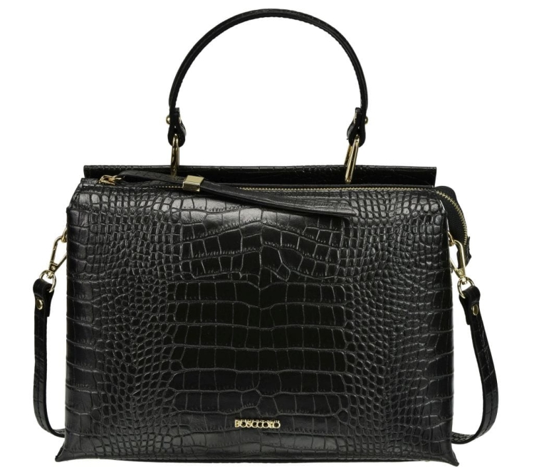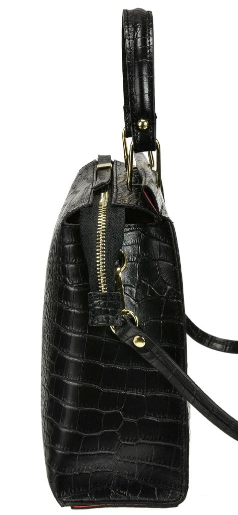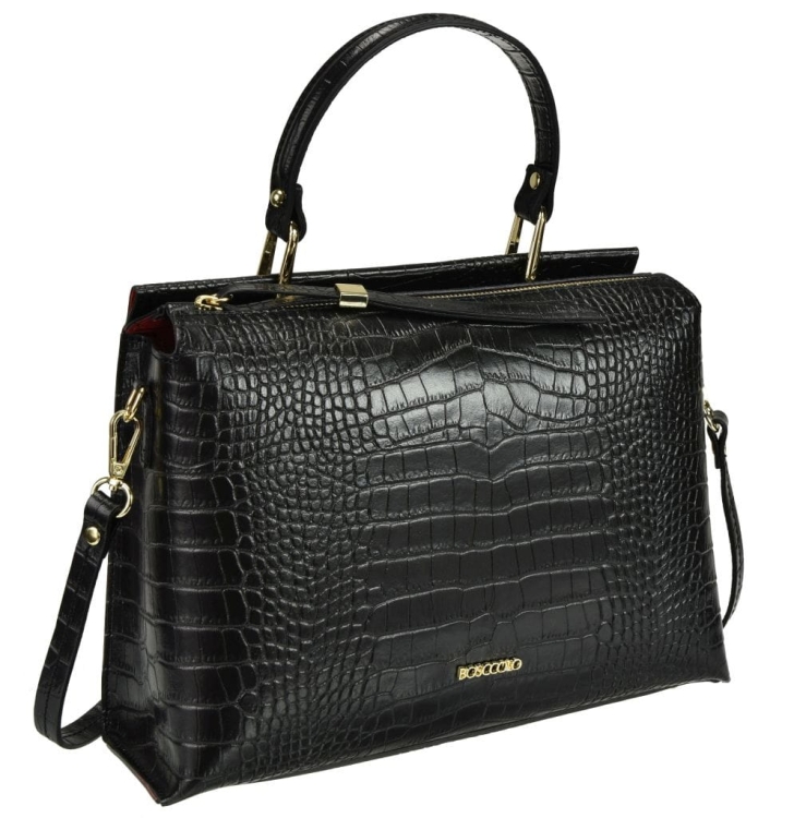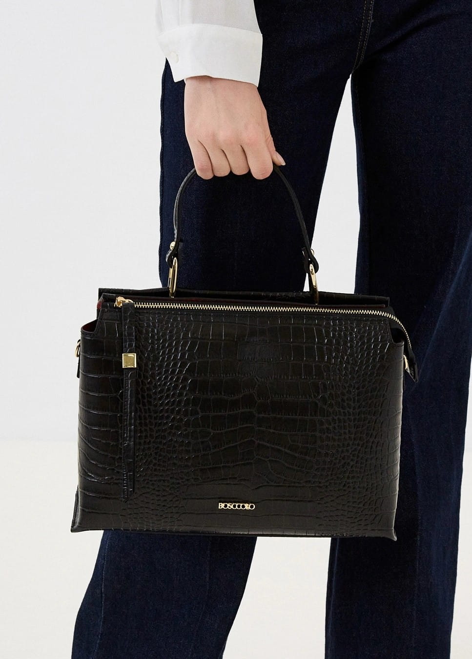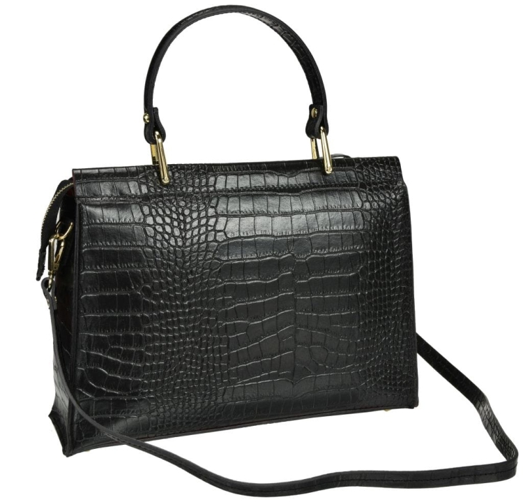 Elegancka torba ze skóry naturalnej o fakturze krokodyla, mieści formatu A4