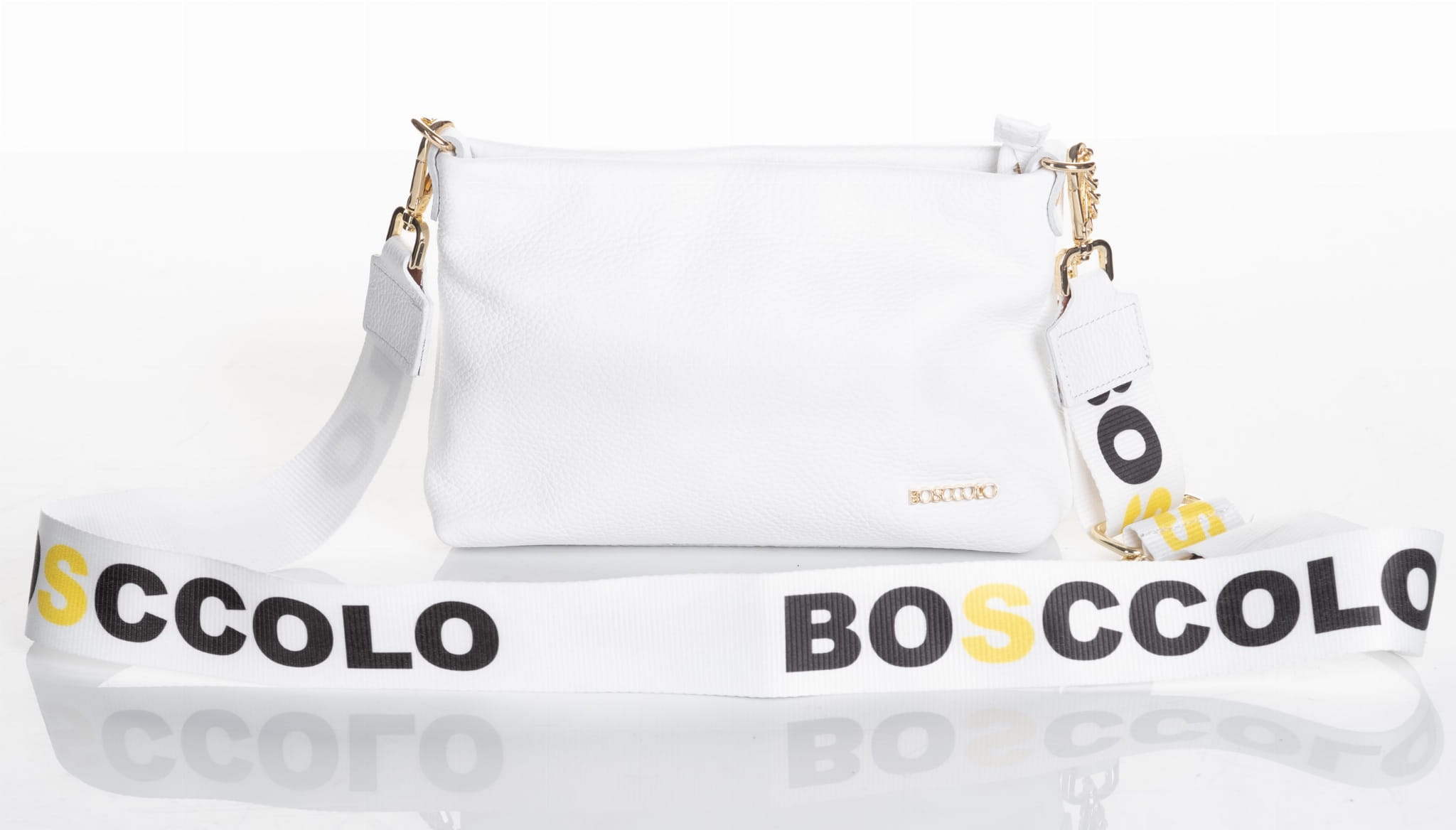 Podwójny pasek , długi łańcuszek i tekstylny pasek na ramię z logo