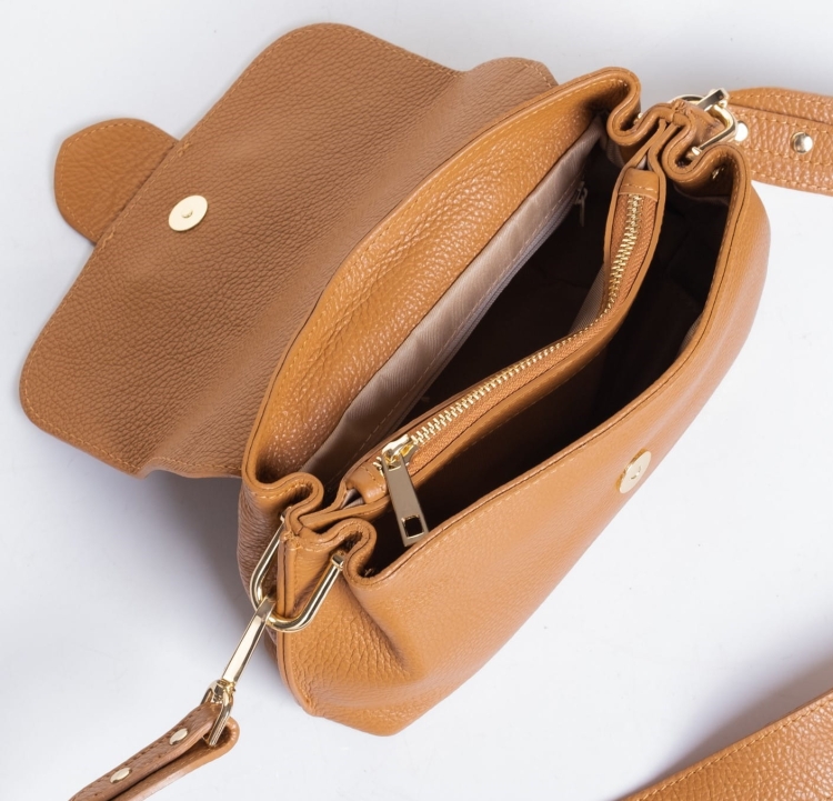 - zamknięcie na klapkę z zatrzaskiem z ozdobną klamrą