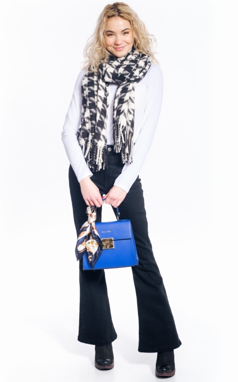 Kuferek, do ręki lub na ramię, dopinany pasek i dopasowana apaszka.
