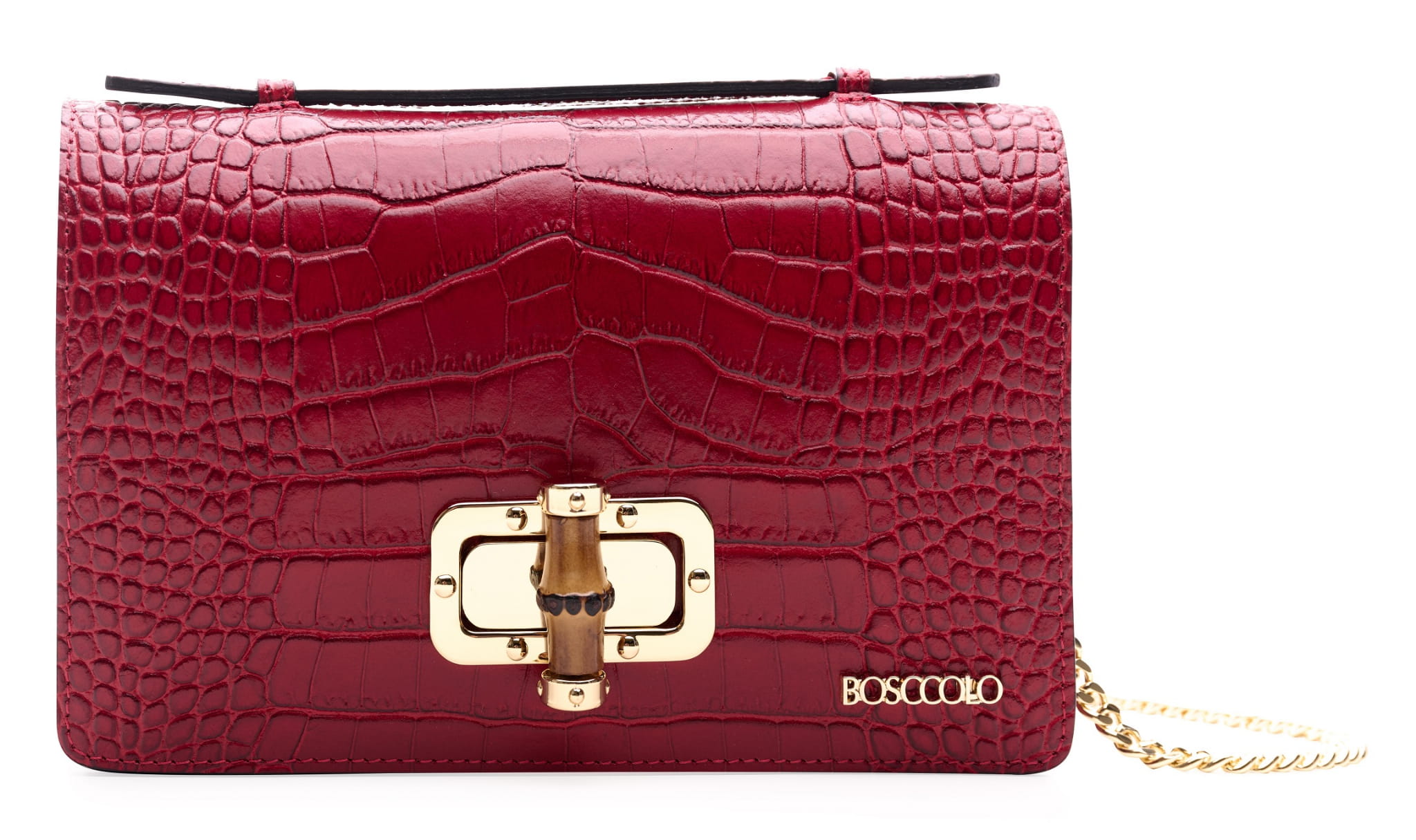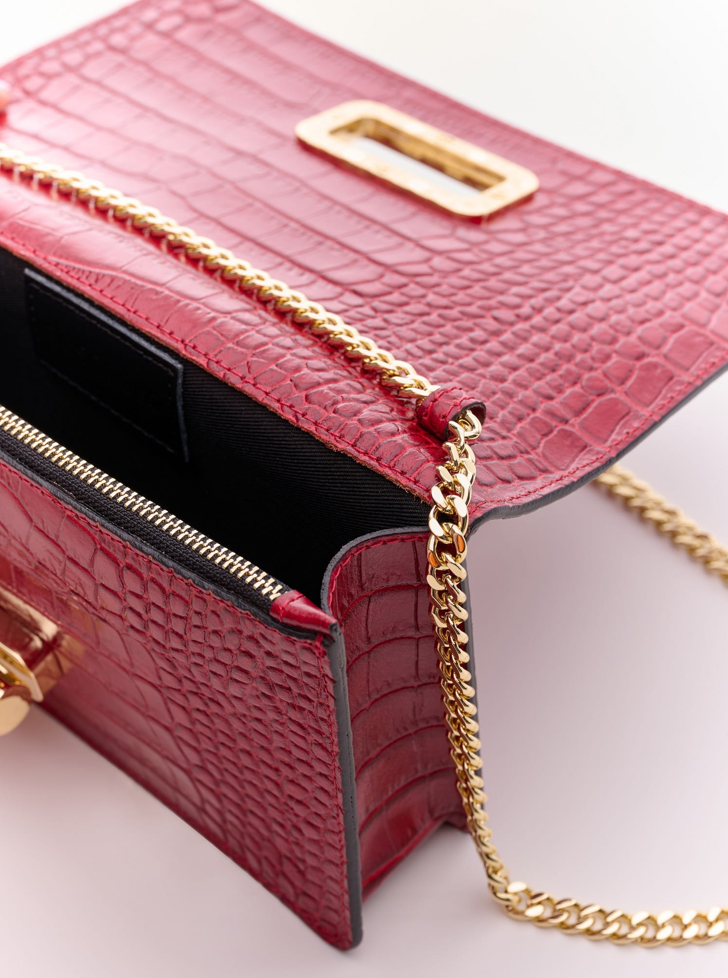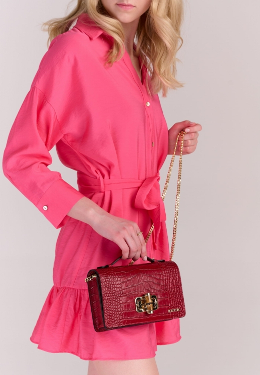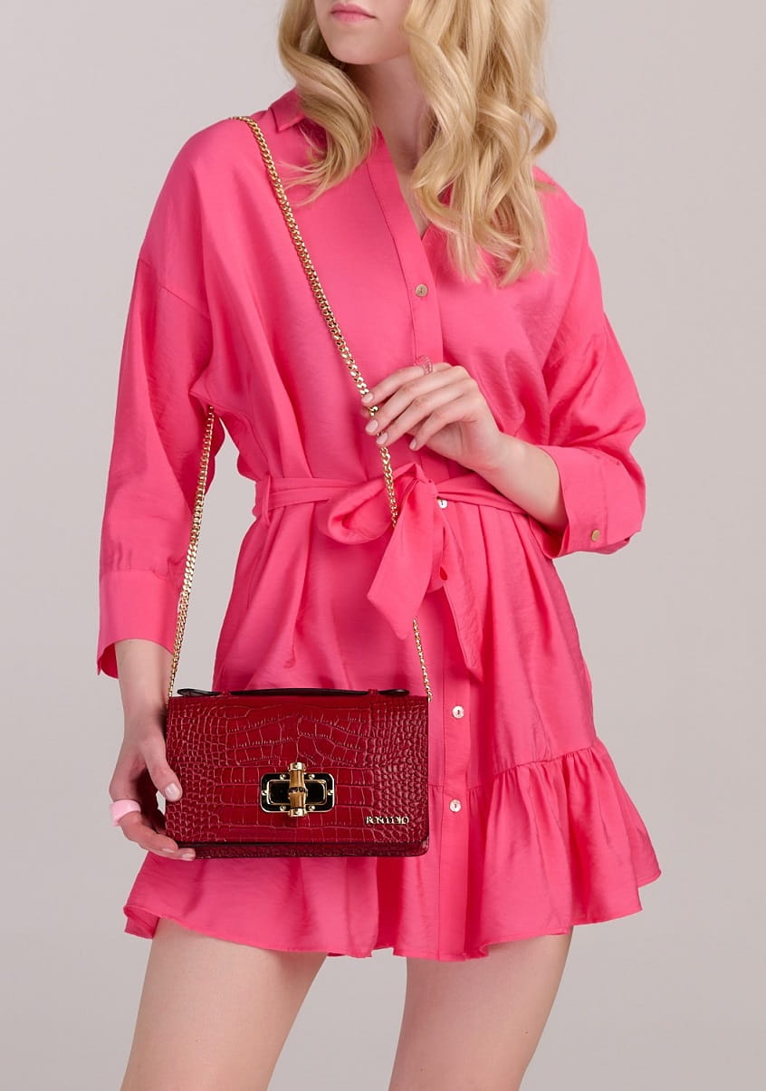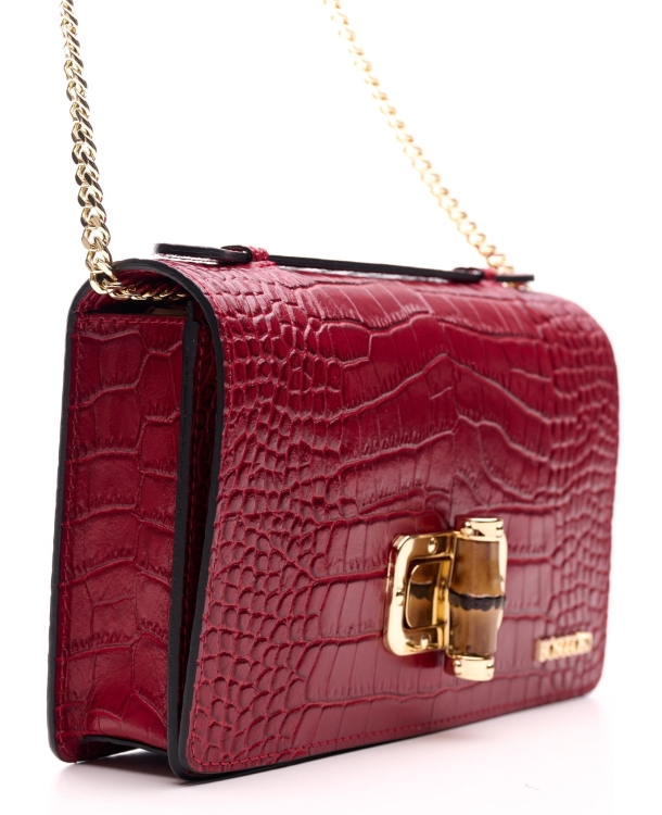 Elegancka torebka ze skóry naturalnej o fakturze krokodyla.