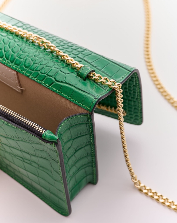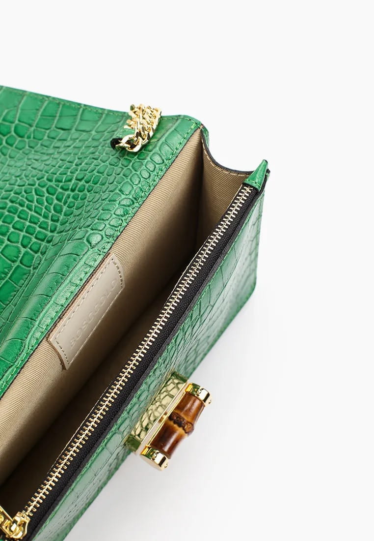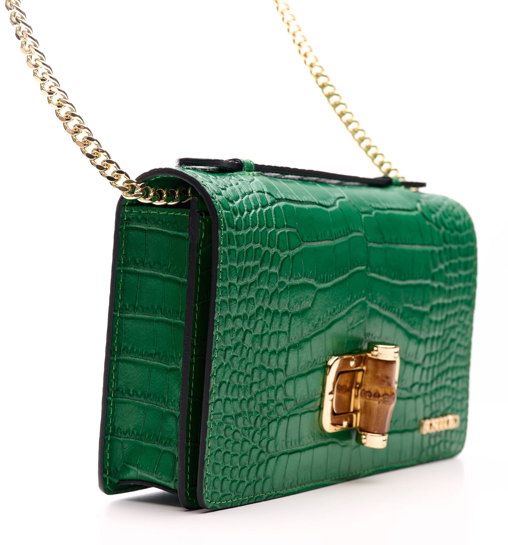 Elegancka torebka ze skóry naturalnej o fakturze krokodyla.