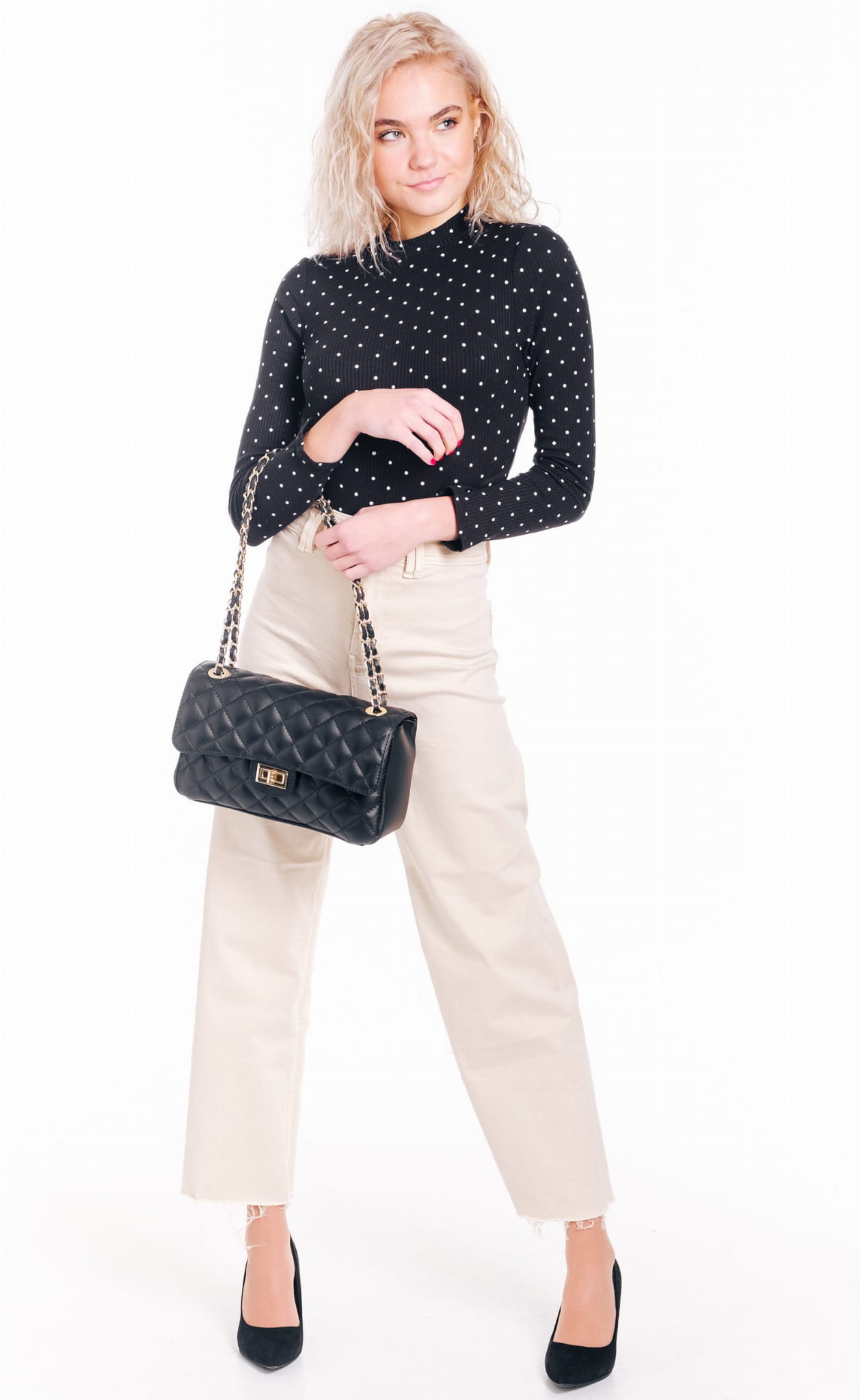 Elegancka torebka ze skóry naturalnej, pikowanej.
