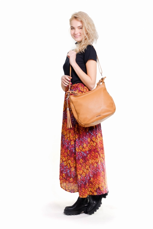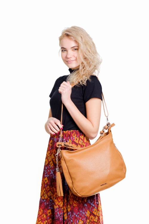 Elegancka torba ze skóry naturalnej, idealna do codziennych stylizacji, regulowany pasek.