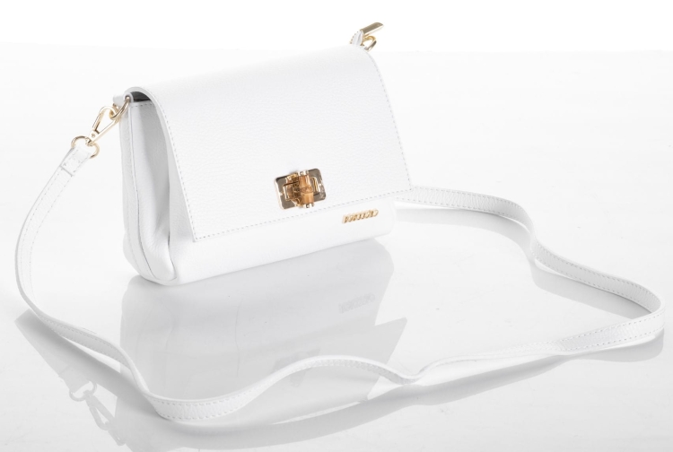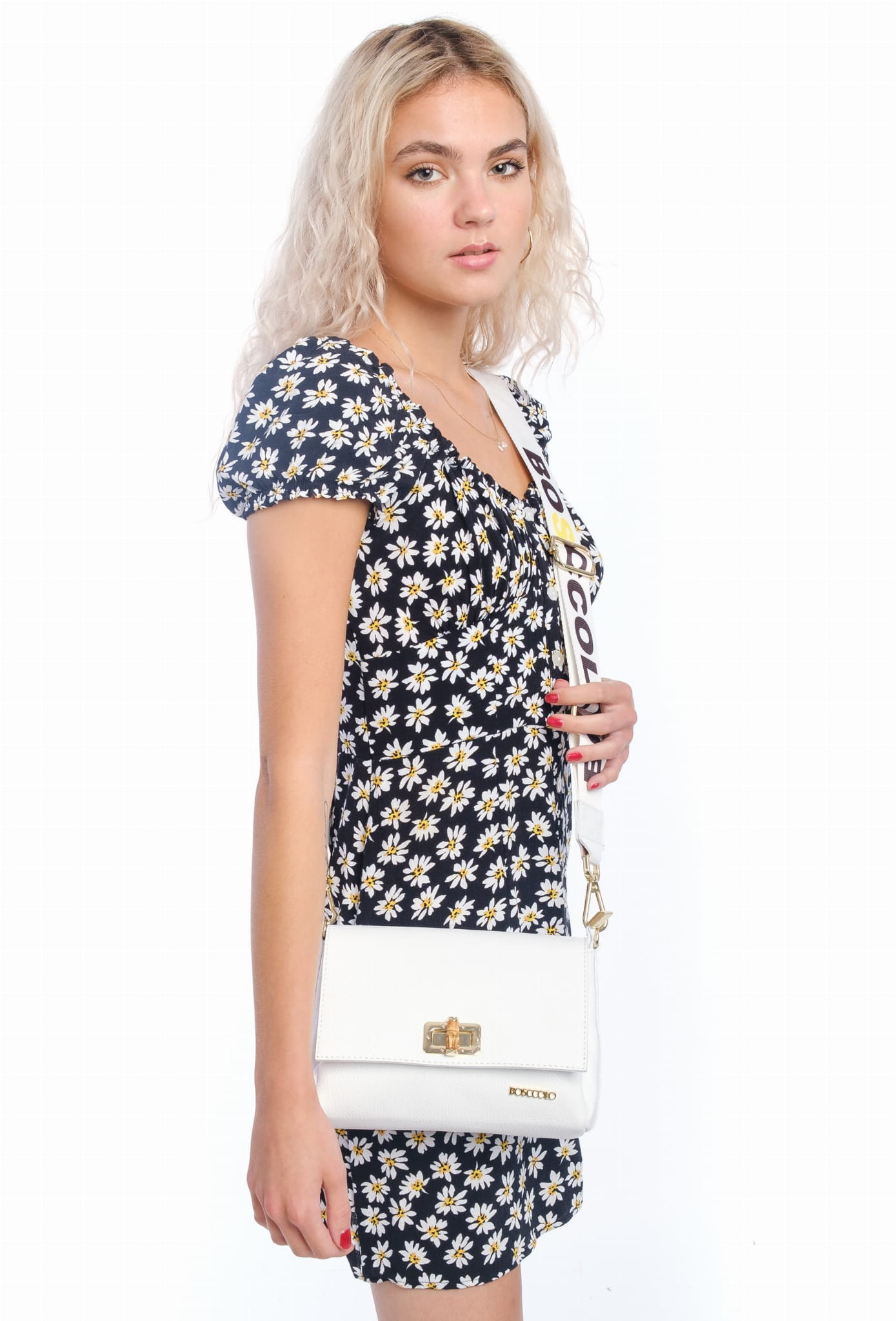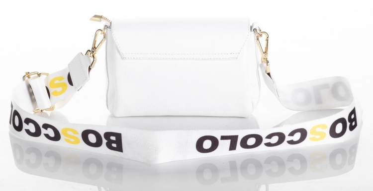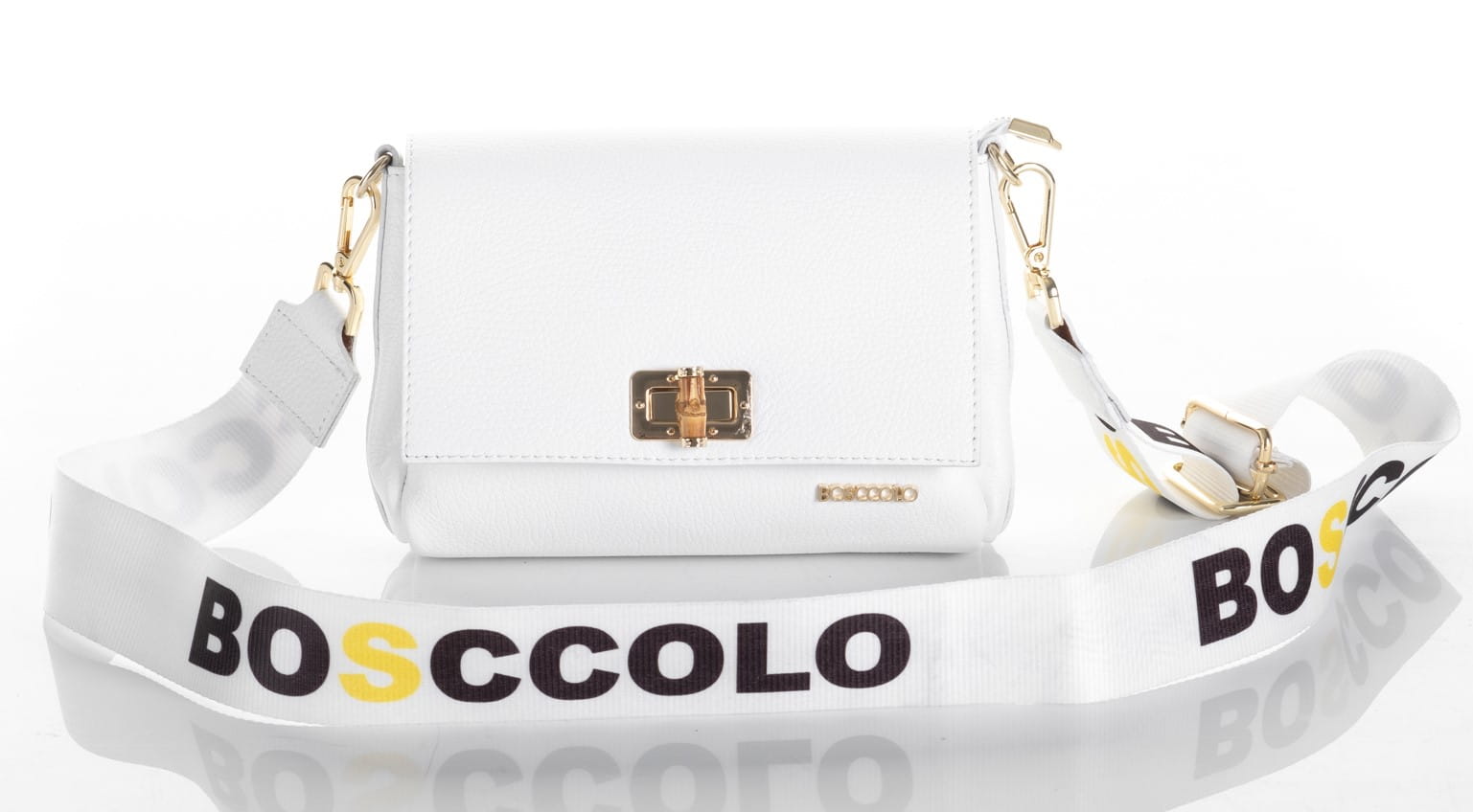 - dopinany szeroki na 5 cm pasek tekstylny z wzorem, skórzane końcówki w kolorze torebki, regulowany, max 135 cm