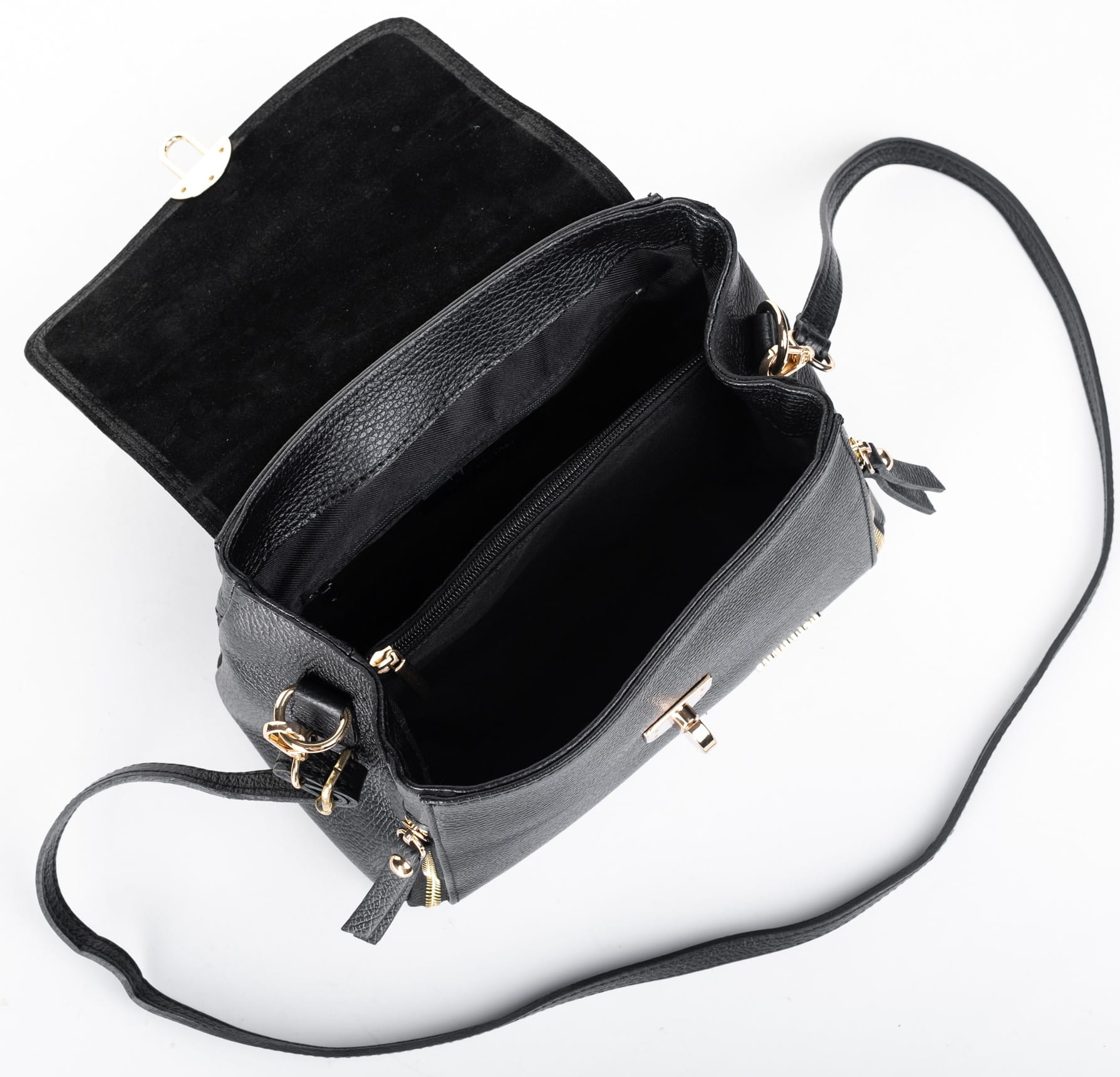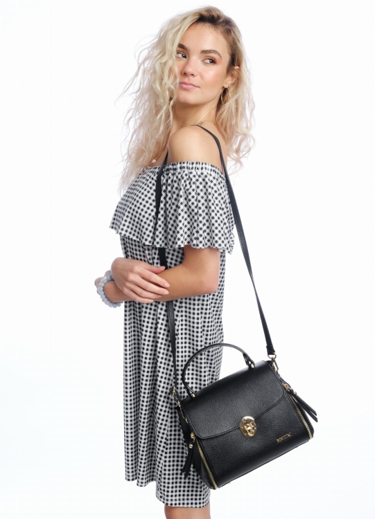 Bardzo elegancka torebka ze skóry naturalnej, oryginalne, ozdobne suwaki, torebka do ręki lub na ramię.
