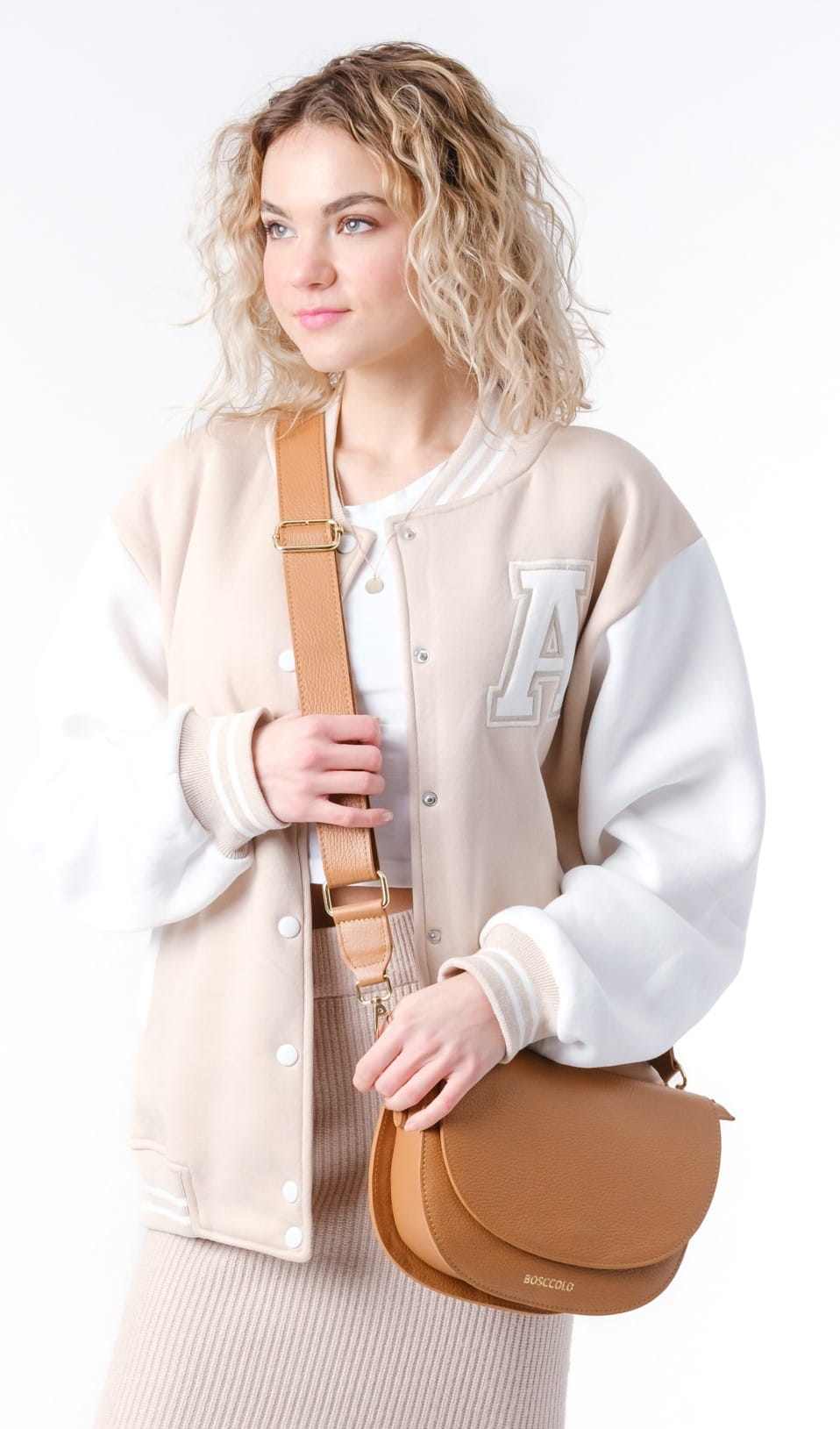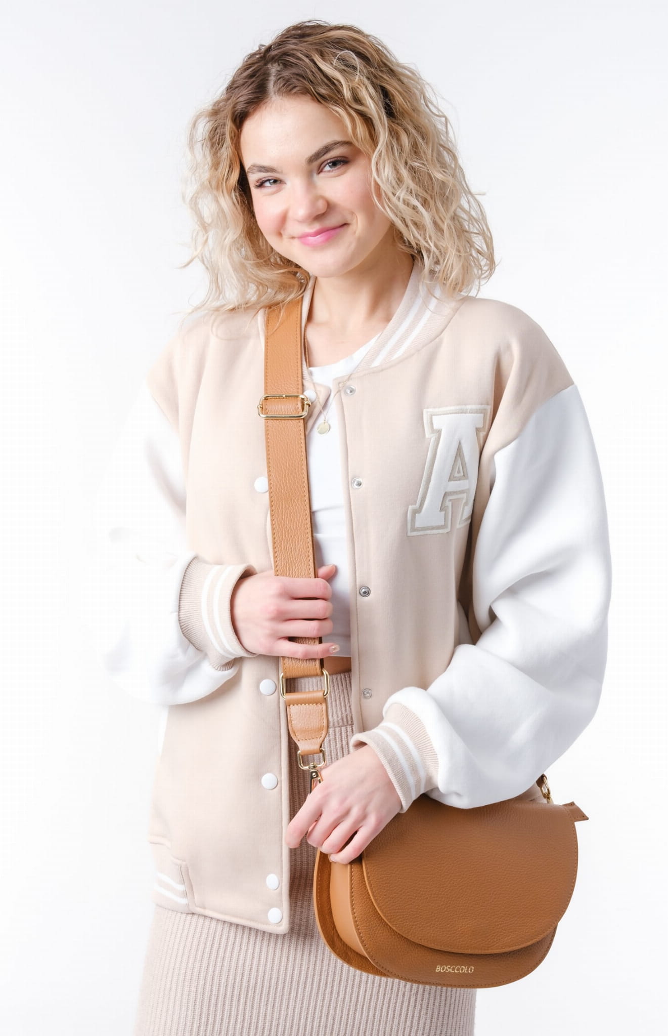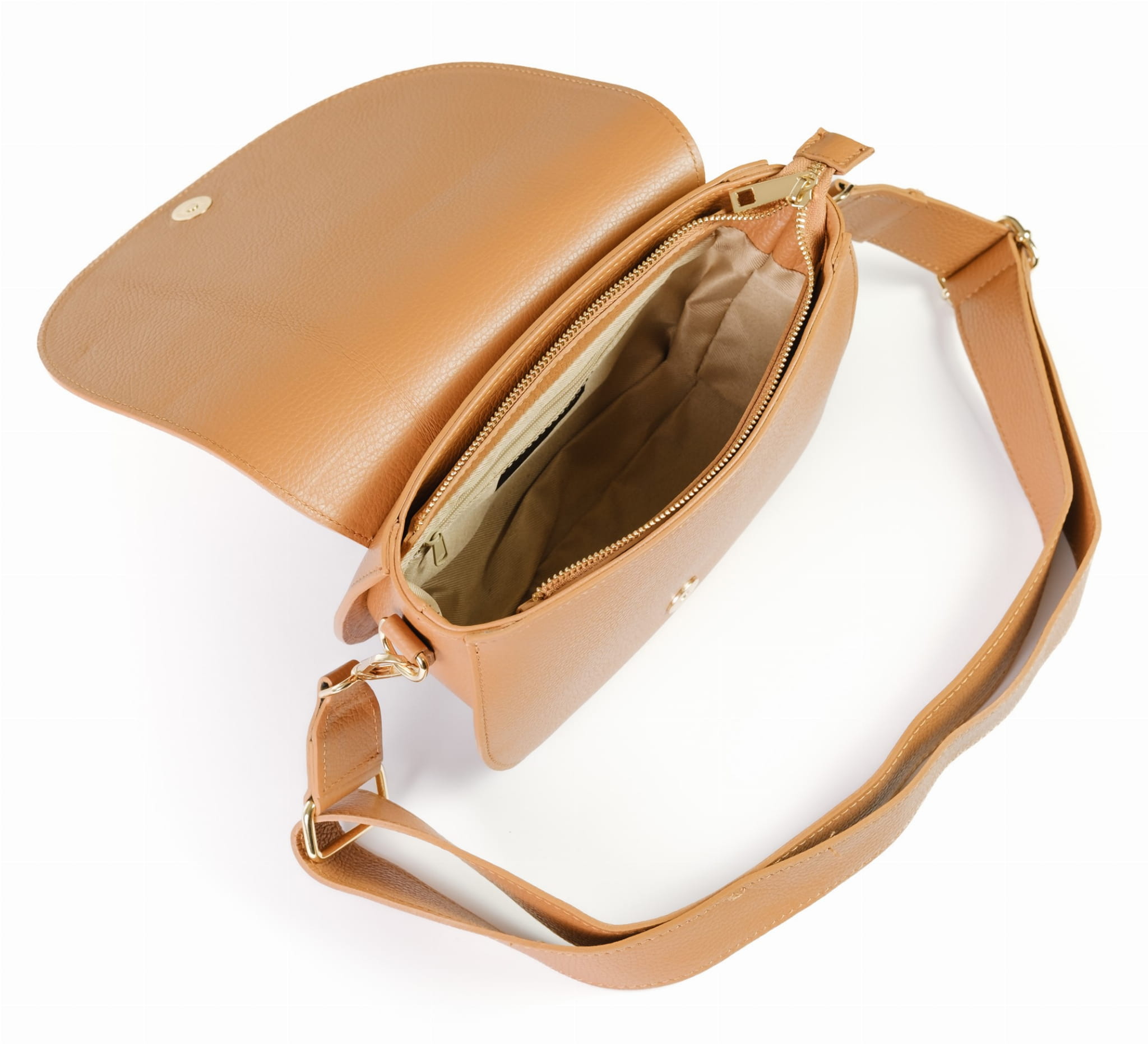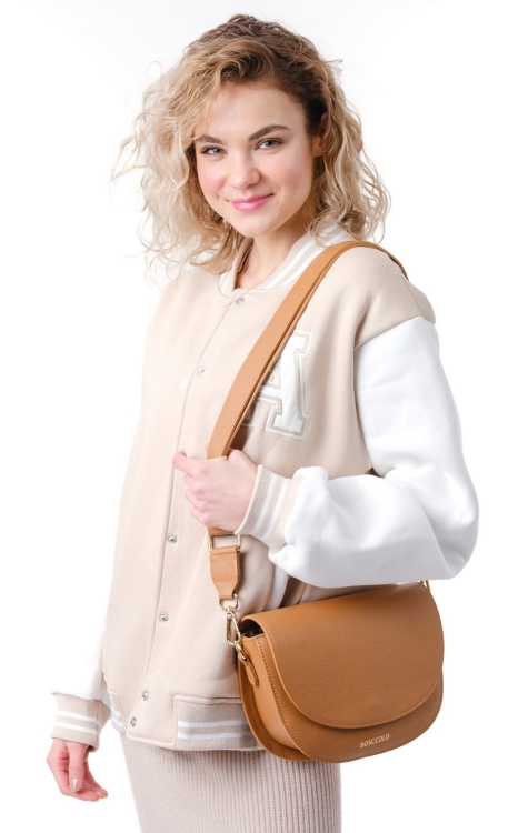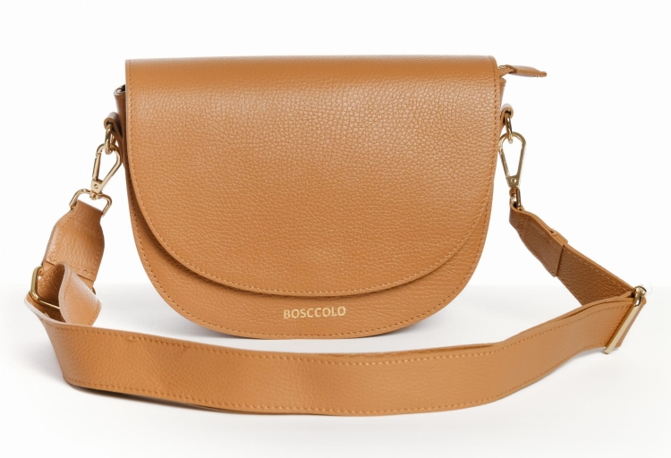 Torebka ze skóry naturalnej na ramię, półokrągła. Elegancki kształt.