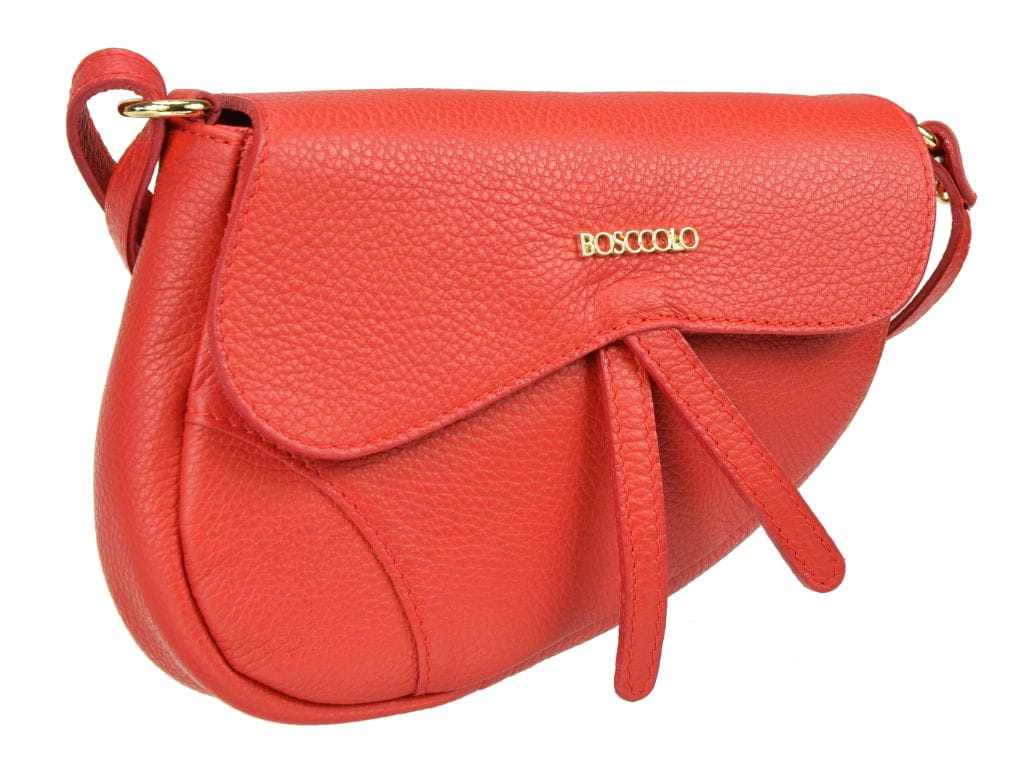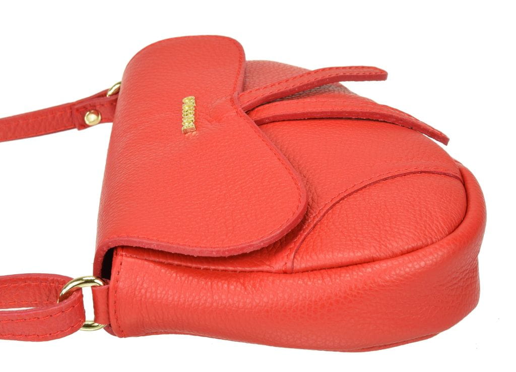 Elegancka torebka ze skóry naturalnej, na ramię, oryginalny kształt, klapka.